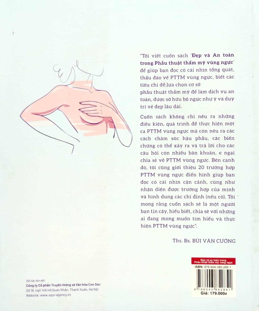 Đẹp Và An Toàn Trong Phẫu Thuật Thẩm Mỹ Vùng Ngực Cách đây hơn 2000 năm trước Công nguyên, các thầy thuốc đã sử dụng vạt da để tái tạo mũi cho bệnh nhân và các tài liệu Y văn thế giới đều coi đó là mốc thời gian mở đầu cho lĩnh vực phẫu thuật tạo hình thẩm mỹ của loài người. Cho tới ngày nay, nhờ sự phát triển mạnh mẽ của khoa học công nghệ nói chung và Y học nói riêng, ngành phẫu thuật tạo hình thẩm mỹ đã có những tiến bộ vượt bậc và vươn lên tầm cao mới, trong đó đặc biệt phải nhắc đến lĩnh vực tạo hình thẩm mỹ vùng ngực. Là phụ nữ, ai cũng mong muốn được sở hữu bộ ngực đẹp. Khi không được may mắn sở hữu bộ ngực đẹp tự nhiên thì phụ nữ thường tìm đến các cơ sở phẫu thuật thẩm mỹ để thực hiện niềm mơ ước. Tuy nhiên, điều này tiềm ẩn rất nhiều rủi ro. Vì vậy, phái đẹp cần trang bị cho m.ình những kiến thức chính xác về phẫu thuật thẩm mỹ (PTTM) trước khi thực hiện phẫu thuật. Cuốn sách “Đẹp và An toàn trong Phẫu thuật thẩm mỹ vùng ngực” của Thạc sĩ, Bác sĩ Bùi Văn Cường đã ra đời vì mục đích này. Cuốn sách mà bạn đọc đang cầm trên tay là cuốn cẩm nang thú vị cung cấp những kiến thức bổ ích về PTTM vùng ngực đẹp và an toàn. Cuốn sách gồm 11 phần chính: Bộ ngực phụ nữ – Công trình của tạo hóa Tổng quan về phẫu thuật thẩm mỹ vùng ngực Điều kiện thực hiện phẫu thuật thẩm mỹ vùng ngực Các kiểu ngực và phương pháp phẫu thuật Các loại túi ngực và các vị trí đặt túi ngực Quy trình thực hiện phẫu thuật thẩm mỹ vùng ngực Phẫu thuật thẩm mỹ núm vú, quầng vú Biến chứng của phẫu thuật thẩm mỹ vùng ngực Chăm sóc và duy trì sức khỏe, vẻ đẹp vùng ngực hậu phẫu 20 trường hợp điển hình trong phẫu thuật thẩm mỹ vùng ngực Các câu hỏi thường gặp khi phẫu thuật thẩm mỹ vùng ngực Điểm nổi bật của cuốn sách là tổng hợp ra 20 trường hợp điển hình để bạn đọc có cái nhìn toàn diện, thực tế về PTTM vùng ngực, từ đó nhận diện được m.ình thuộc trường hợp nào, nên sử dụng phương pháp gì cho phù hợp với bản thân. Ở phần cuối của cuốn sách nêu ra 35 câu hỏi thường gặp và giải đáp những băn khoăn, e ngại của phái đẹp về quá trình thực hiện PTTM vòng một an toàn. Với mục đích truyền tải cho bạn đọc những thông tin cơ bản, hữu ích về PTTM vùng ngực, hi vọng cuốn cẩm nang này sẽ là người bạn tin cậy cho tất cả mọi người để những ai đã và đang quan tâm tới lĩnh vực PTTM vùng ngực có thể tự tin làm đẹp một cách an toàn, lựa chọn cơ sở thẩm mỹ uy tín, phù hợp với bản thân.