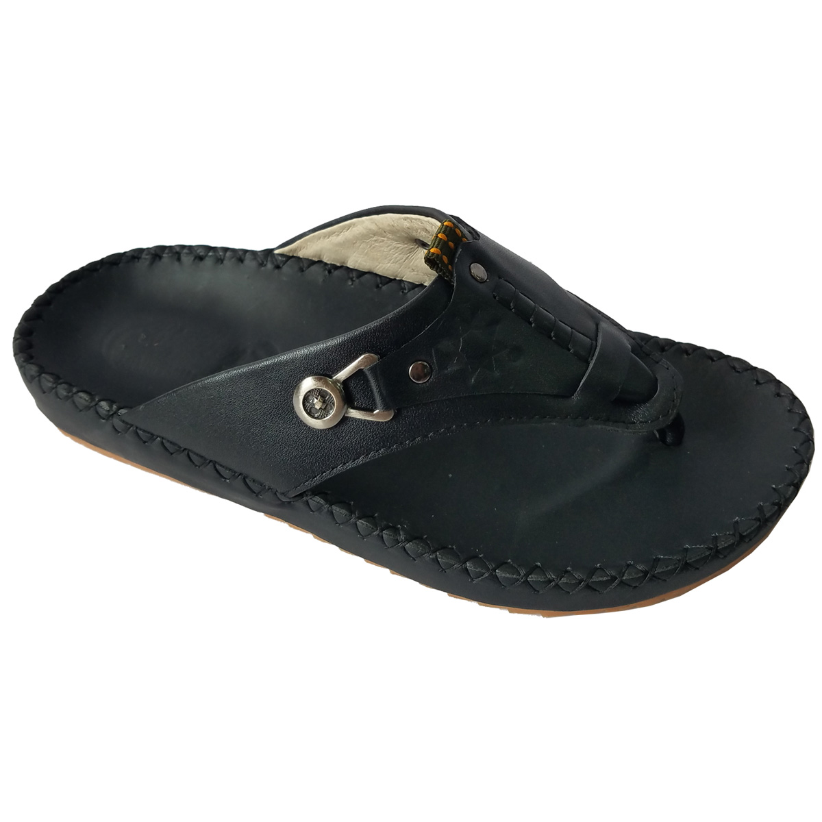Dép da nam xỏ ngón màu đen - da bò thật 100%