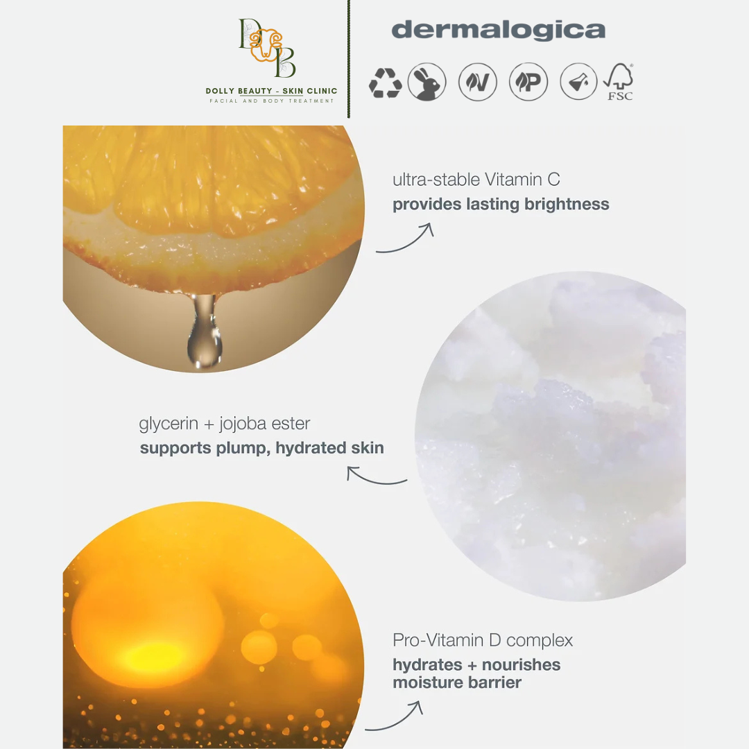 Là một thành phần có tác dụng ngay lập tức, vitamin C tập trung vào các vấn đề về da như đốm đen, nhược điểm, mụn trứng cá, lỗ chân lông to, xỉn màu bằng