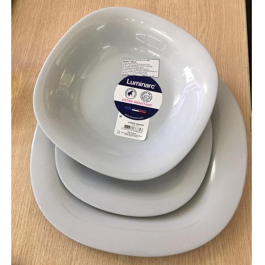 ✨Đĩa (dĩa) thủy tinh đựng món xào, sốt Luminarc Carine Granit 21cm - N6612, dùng vi sóng, sản xuất Pháp