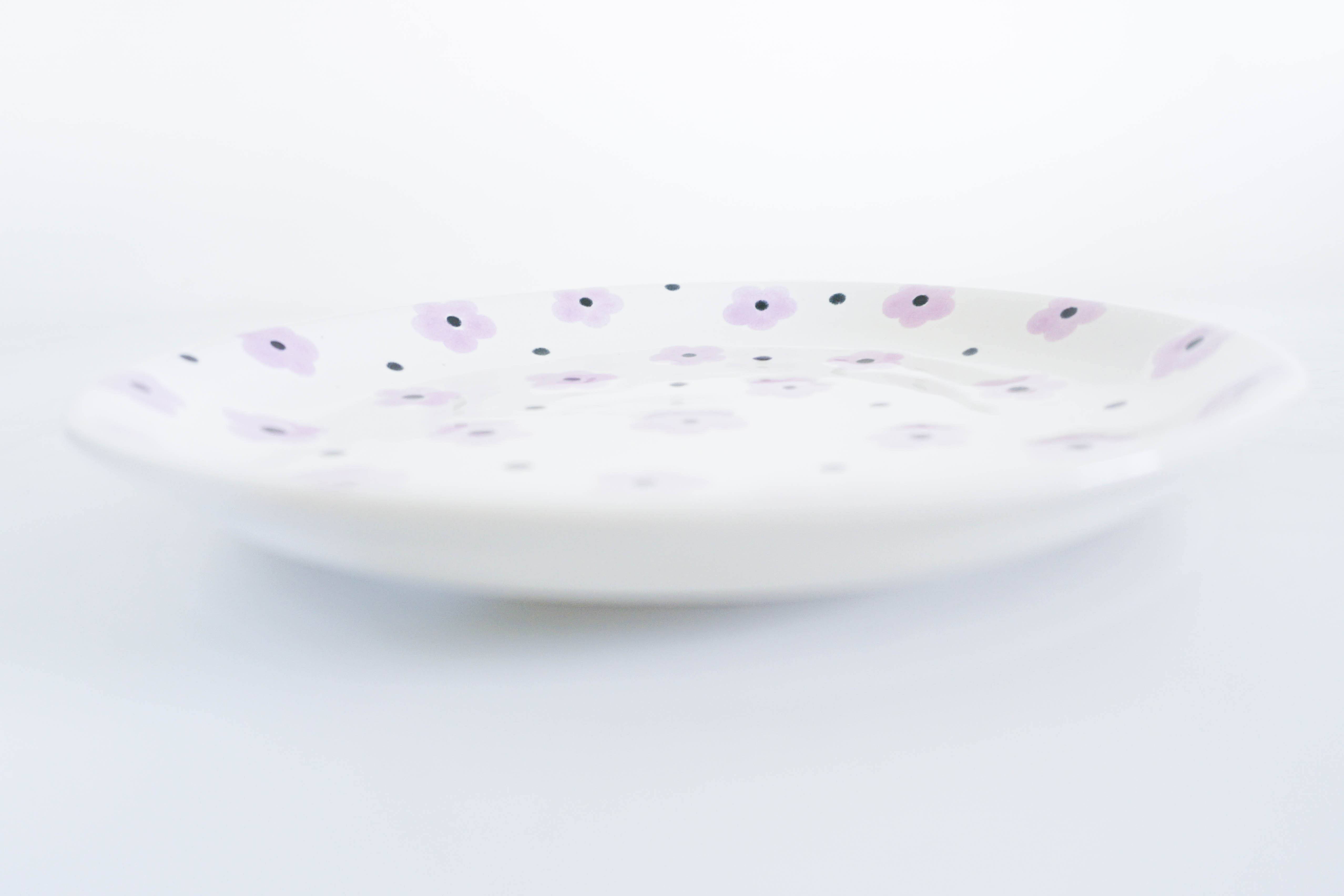Bộ sưu tập Li Ti của thương hiệu Lina Pottery by Minh Tien Ceramic với men lớp men bóng và họa tiết đẹp mắt bao gồm ly Morning (trung, lớn và đại) và dĩa tròn đi kèm.