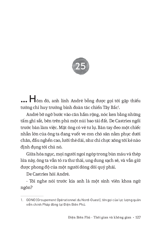 Trong tác phẩm này, thông qua lời kể và hướng dẫn tham quan của Đại tá Quý, người chiến sĩ đã từng vào hầm chỉ huy tướng de Castries và Thanh, cán bộ bảo tàng Điện Biên Phủ; nhà nghiên cứu sử học người Pháp André và nhà báo châu Phi Mohamed đã đi điền giả, tham quan chiến trường Điện Biên Phủ, nhờ đó mà họ hiểu thêm về nguyên nhân làm nên thắng lợi của Chiến thắng lừng lẫy năm châu, chấn động đ.ịa cầu của nhân dân Việt Nam.