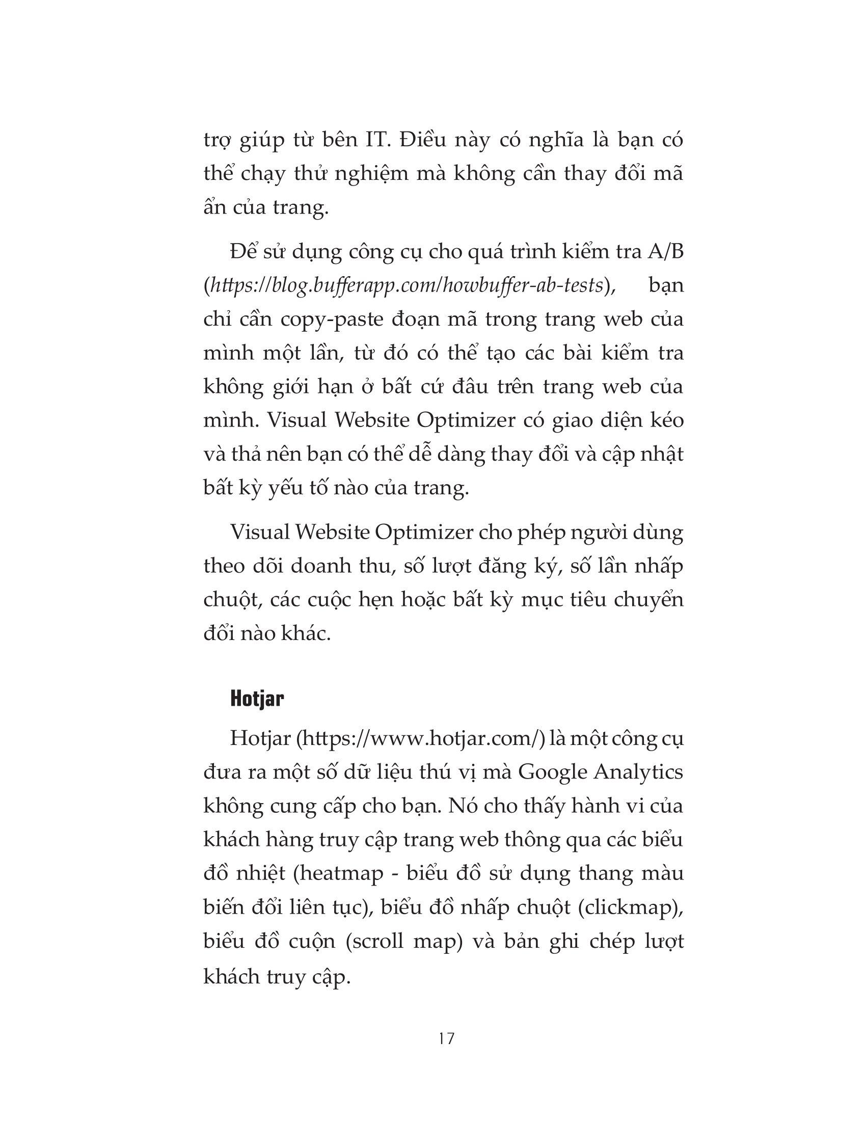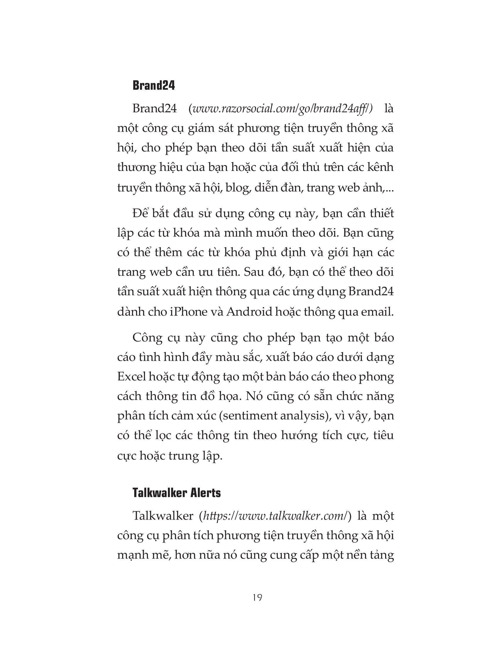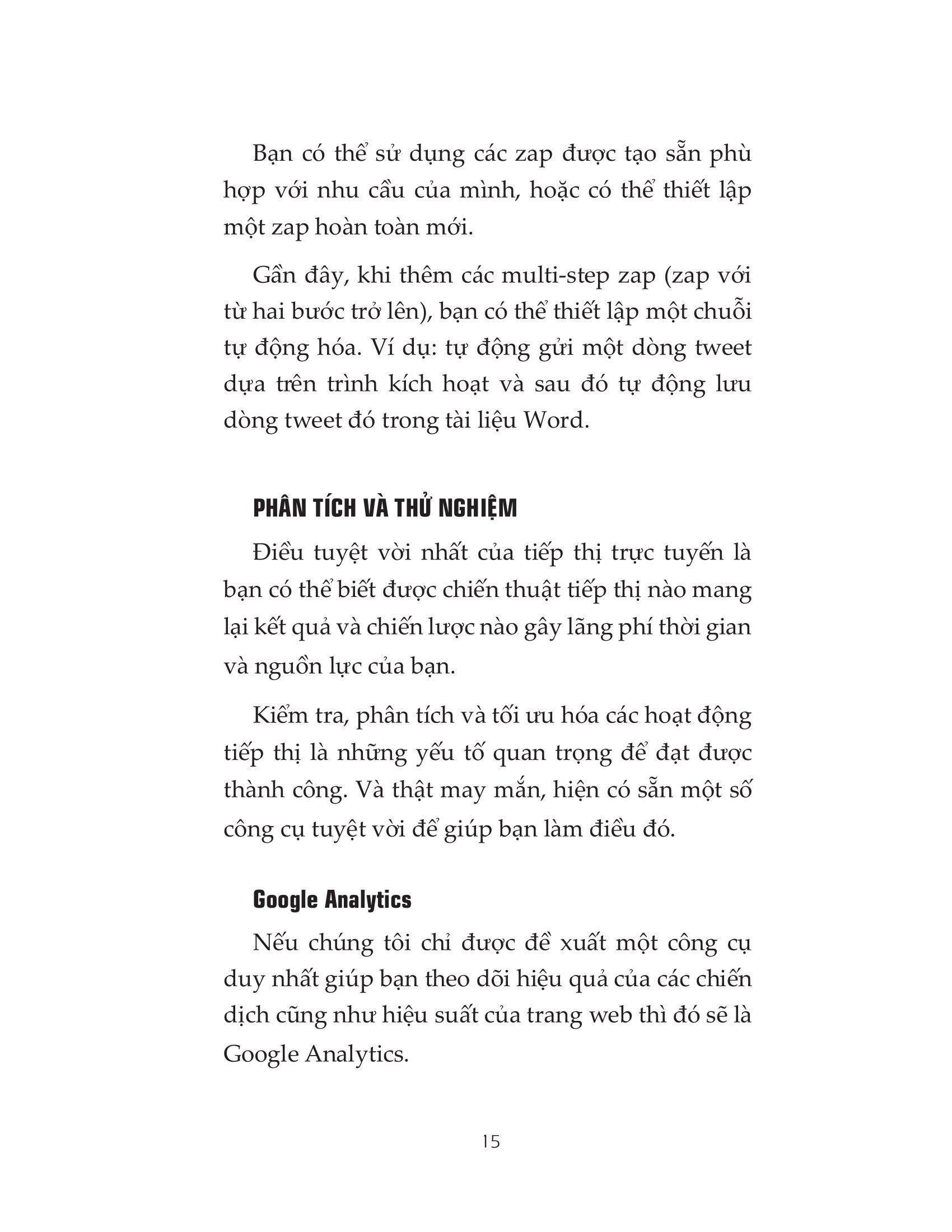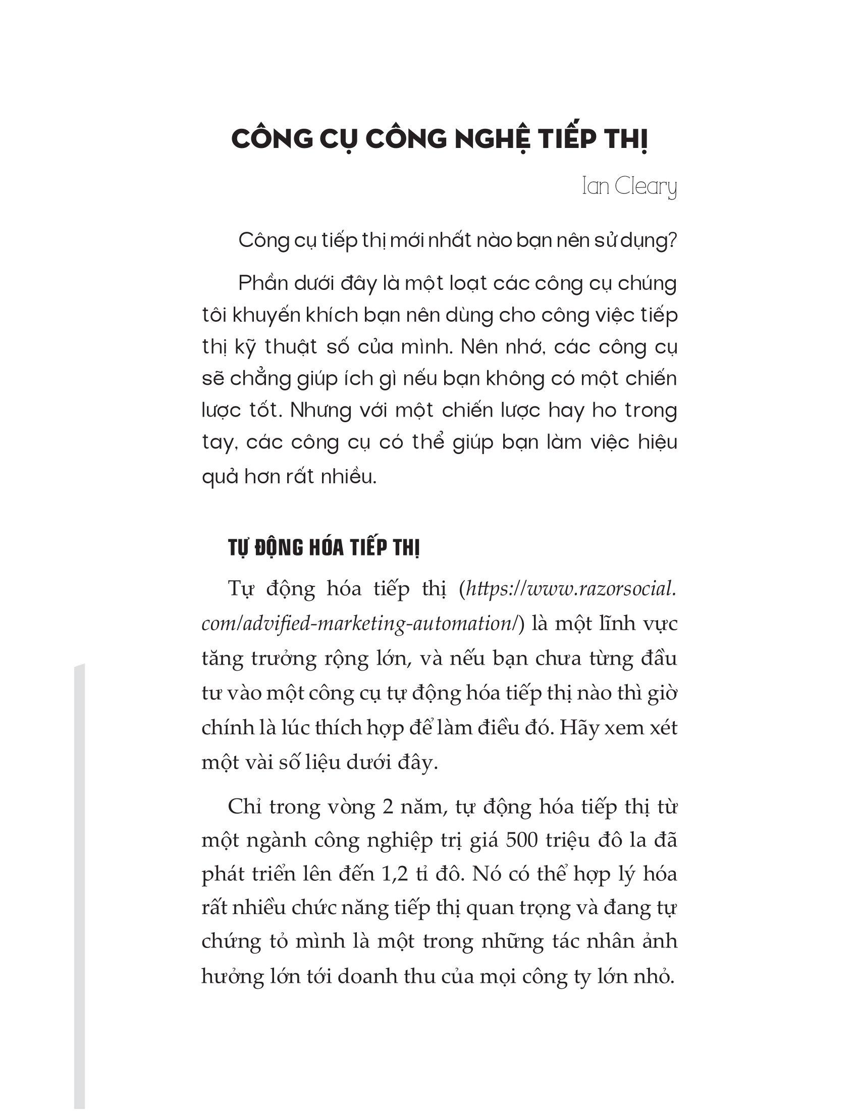 Đây chính xác là cuốn “bí kíp” hữu ích bao gồm những hướng dẫn cách tối ưu hóa các công cụ truyền thông như ok Ads, Youtube, LinkedIn, VR,... để xây dựng thương hiệu doanh nghiệp, tạo dựng thương hiệu cá nhân, nâng tầm ảnh hưởng và độ phổ biến của thương hiệu, từ đó tạo dựng một nền tảng vững chắc nhằm nâng cao doanh số bán hàng. Khi đã nắm chắc tất cả các công cụ cần thiết đó, doanh nghiệp sẽ biết cách xây dựng một chiến lược marketing nhất quán, theo sát xu hướng thị trường, nắm được thị hiếu của khách hàng và biết cách phối kết hợp các công cụ marketing hợp lý để thúc đẩy sự phát triển, nâng tầm hoạt động kinh doanh lên một vị thế mới.