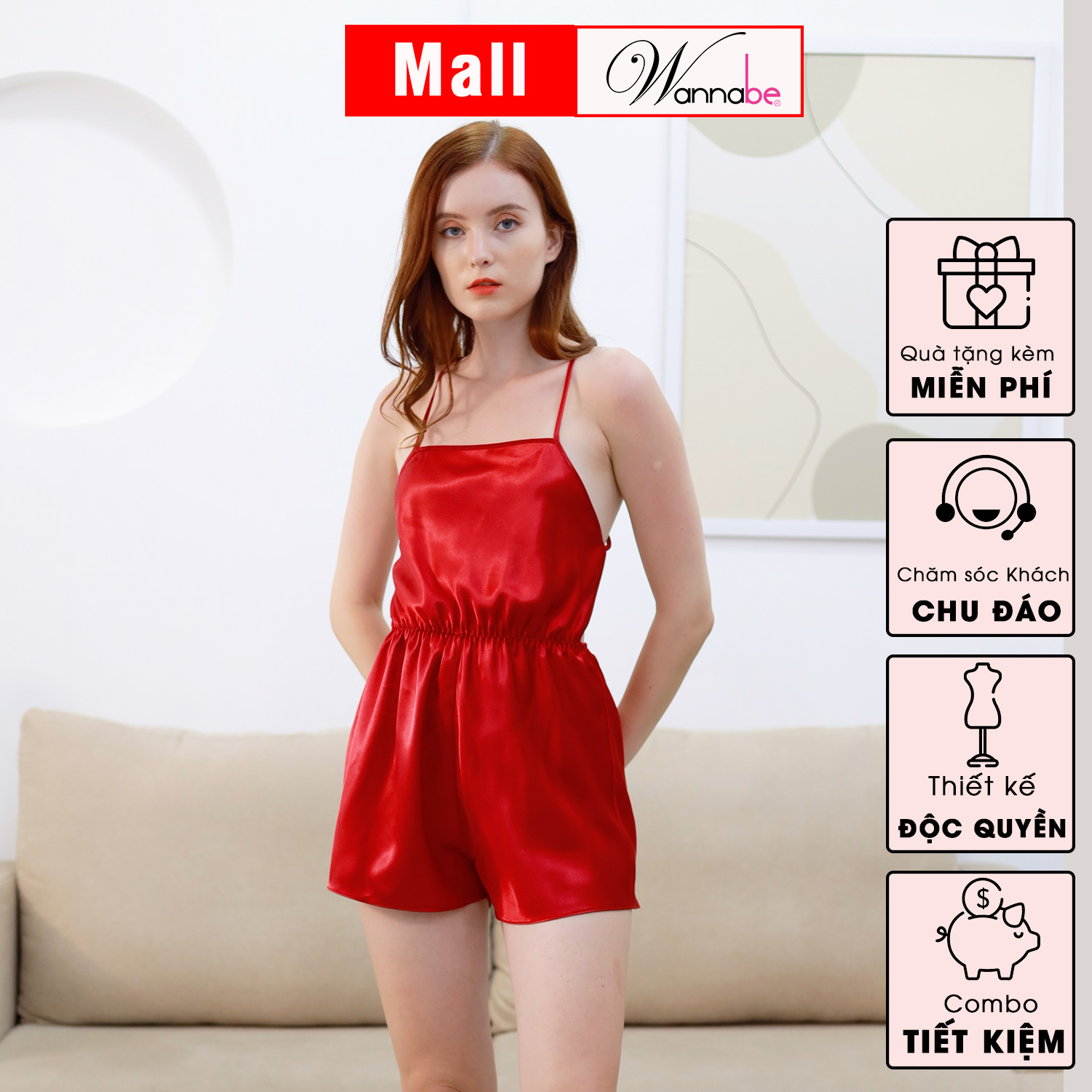 Đồ bộ mặc nhà WANNABE BSS32 đồ bộ quần sọt kiểu dáng jumpsuit cut-out chéo dây thắt nơ khoe lưng ong, vai trần quyến rũĐồ bộ mặc nhà phi lụa cao cấp Wannabe BSS32 thiết kế tôn lên nét đường cong cơ...