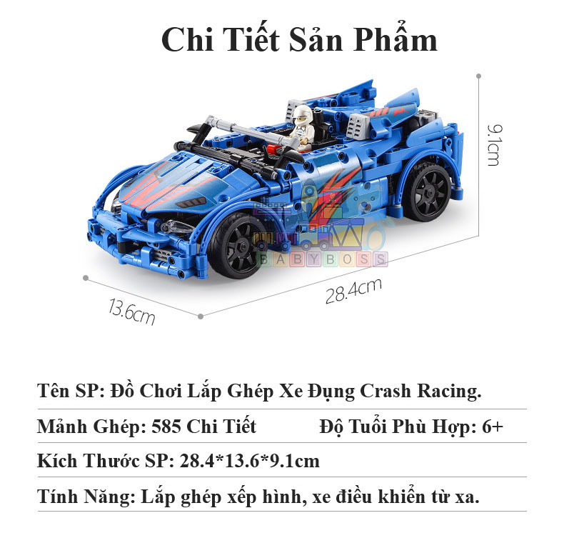 - Bộ sản phẩm bao gồm: hộp đựng, 1 cuốn sách hướng dẫn cách lắp ráp chi tiết giúp người chơi lắp ráp dễ dàng và túi đựng 585 miếng ghép. Ưu Điểm Đồ Chơi Điều Khiển Từ Xa 4 Chế Độ, Đồ Chơi Mô Hình, Bộ Đồ Chơi Lắp Ghép Xếp Hình Xe Đụng Crash Racing Với 585 Chi Tiết.