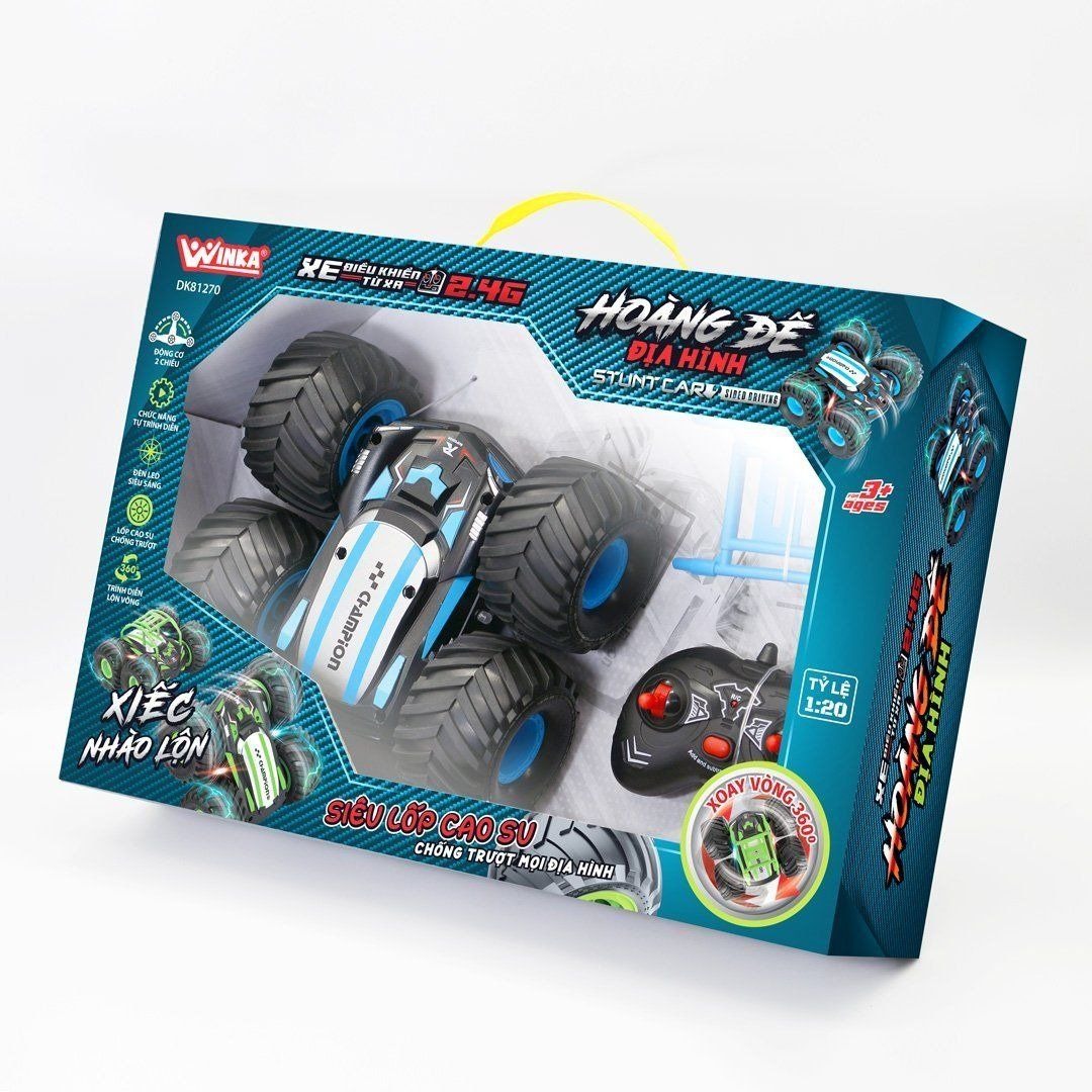 XE ĐIỀU KHIỂN TỪ XA 2.4G - KIỆN TƯỚNG NHÀO LỘN Đồ chơi xe điều khiển được thiết kế với mô hình xe đua, chất liệu hợp kim độ bền cao, lốp cao su to và
