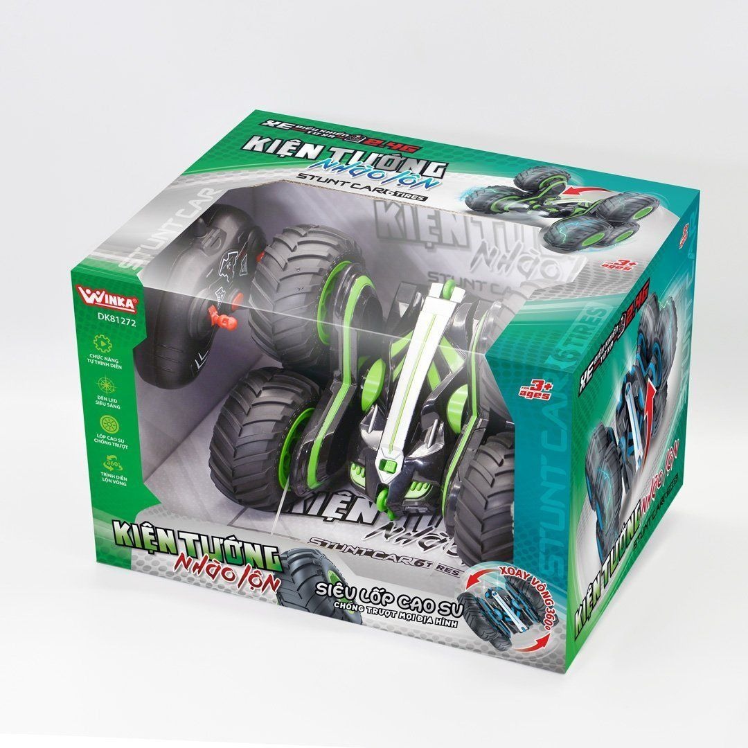 XE ĐIỀU KHIỂN TỪ XA 2.4G - KIỆN TƯỚNG NHÀO LỘN Đồ chơi xe điều khiển được thiết kế với mô hình xe đua, chất liệu hợp kim độ bền cao, lốp cao su to và