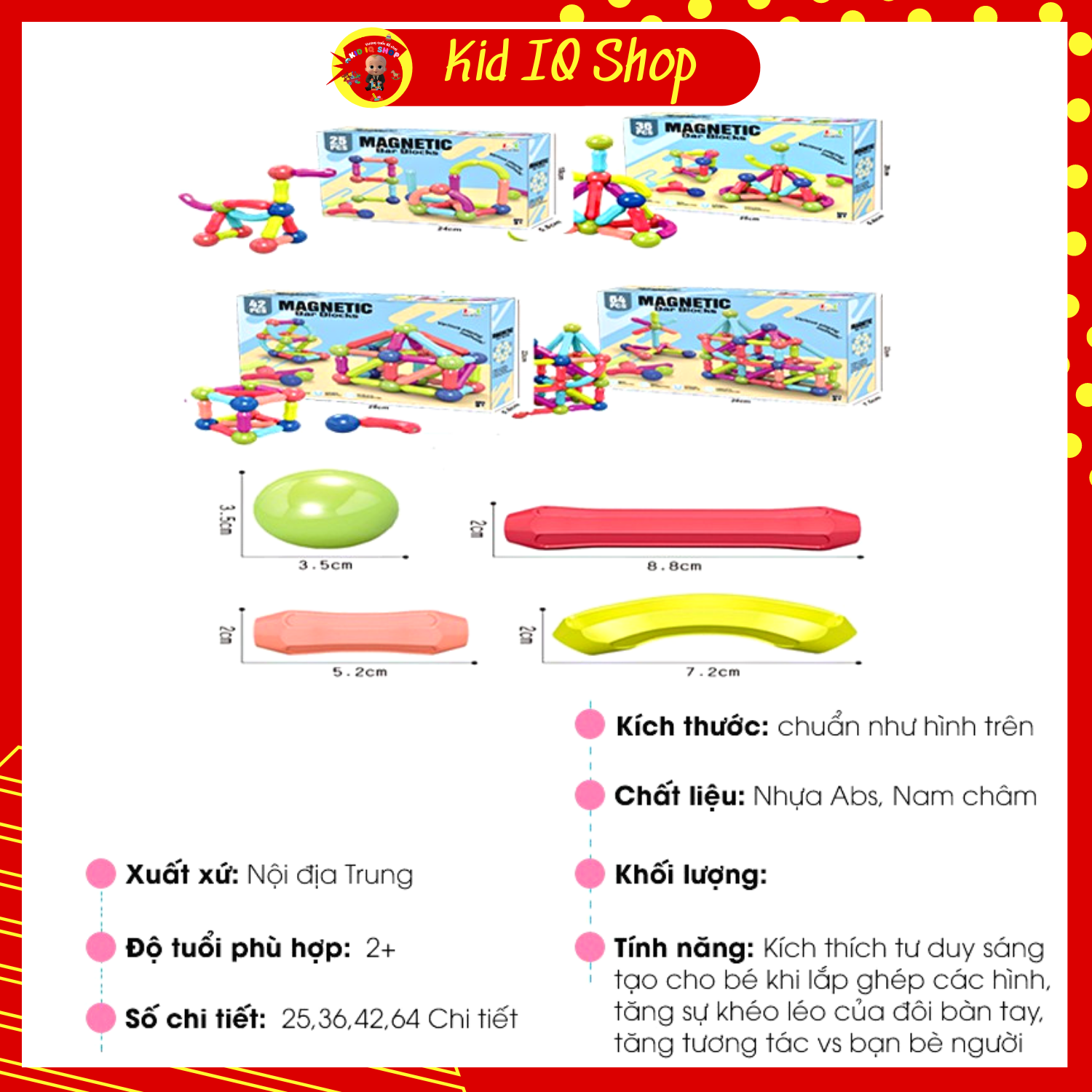 TÊN SẢN PHẨM: Đồ chơi giáo dục sớm cho bé, nam châm xếp ghép hình thông minh 25 chi tiết giúp bé phát triển tư duy logic và sáng tạo