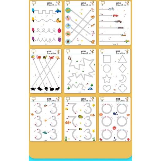 ✨Đồ chơi giáo dục thông minh cho bé tập vẽ tập viết xoá được dùng nhiều lần 64 trang kèm 6 bút