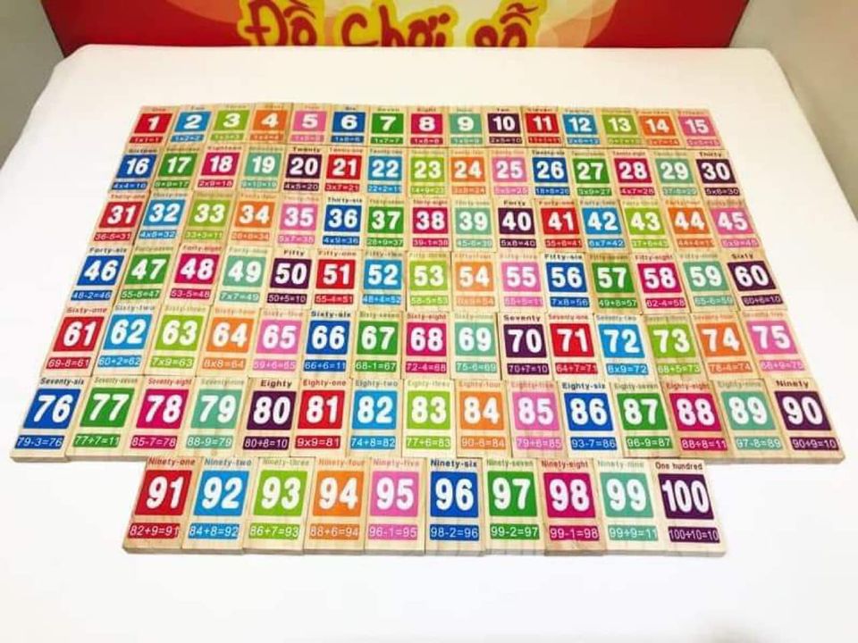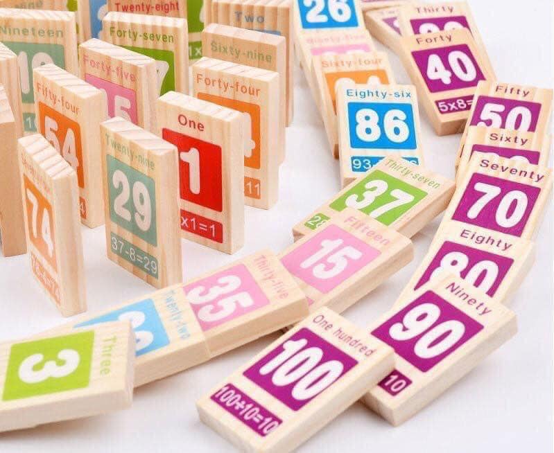 - Domino số học (Từ 1-100). Bộ đồ chơi Domino số học dành cho bé yêu là sản phẩm đồ chơi giáo dục sở hữu thiết kế đơn giản, được làm từ chất liệu gỗ tự nhiên cao cấp đã qua xử lý.