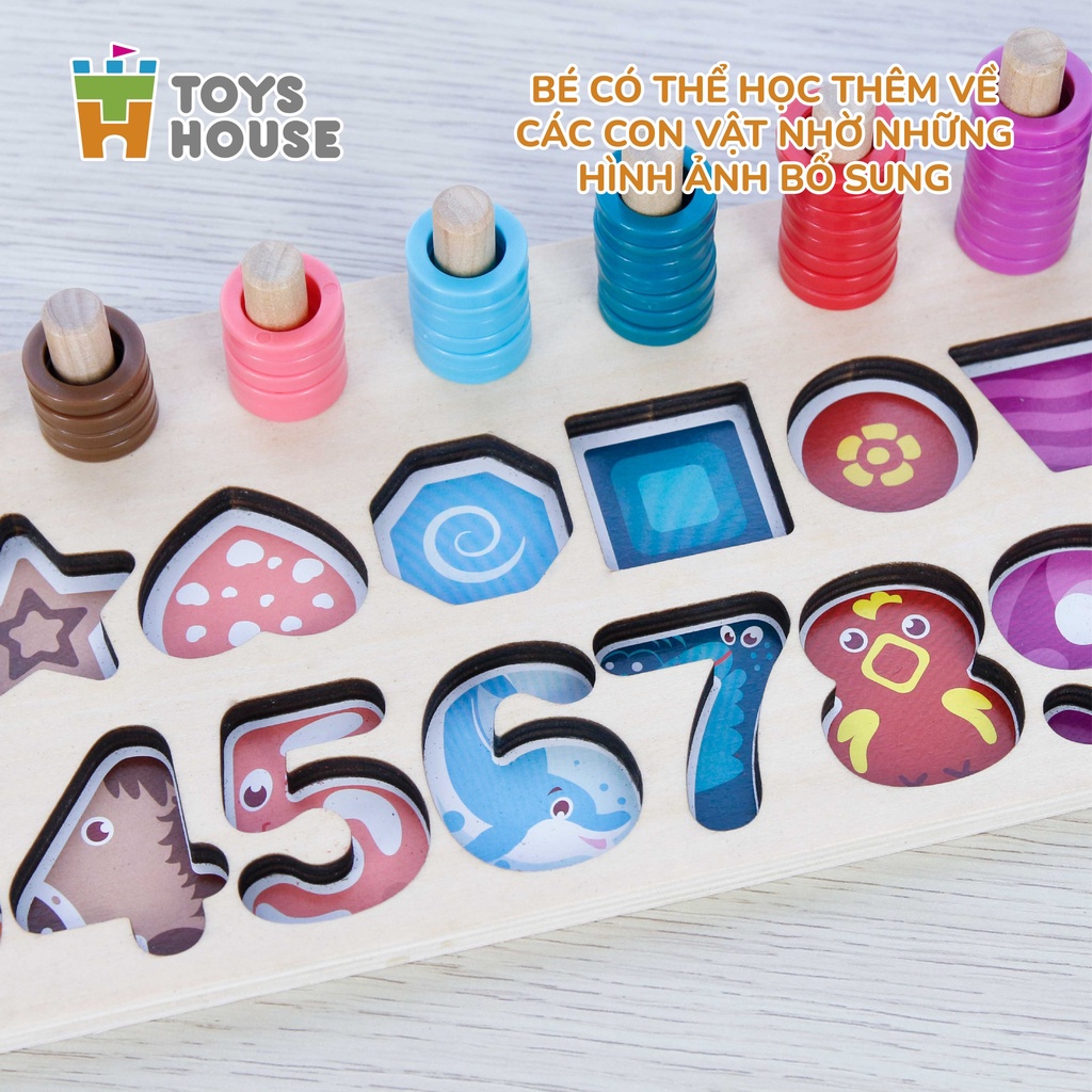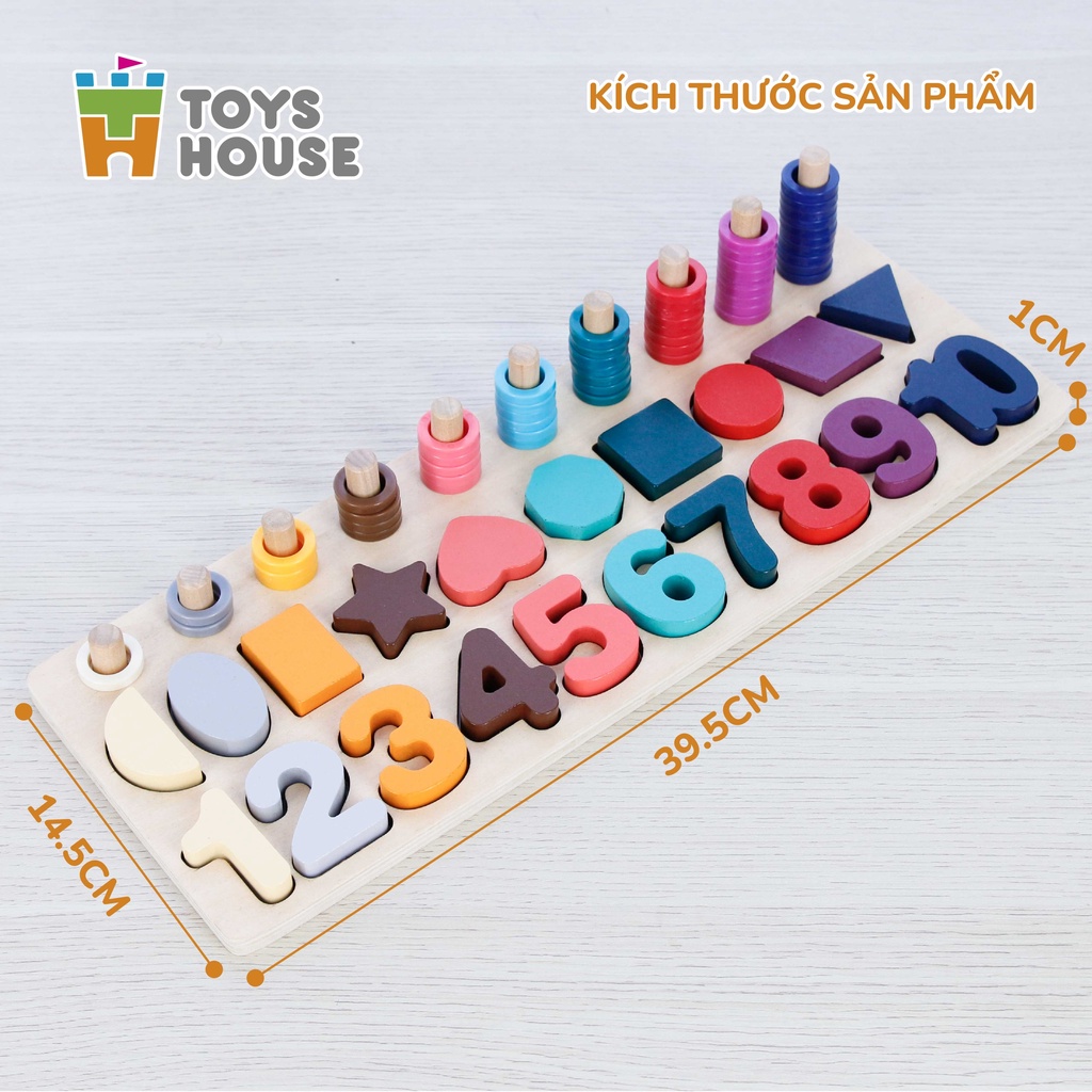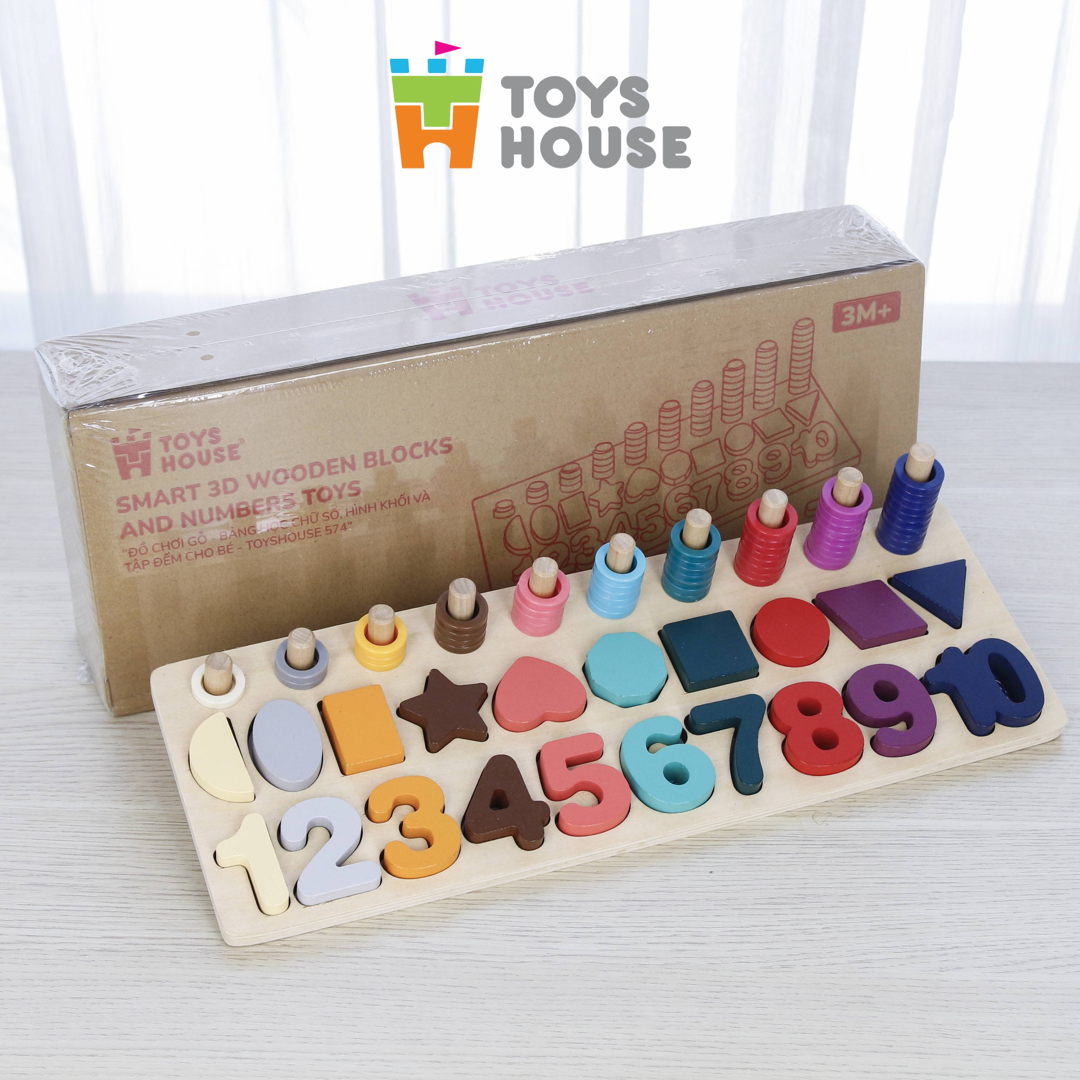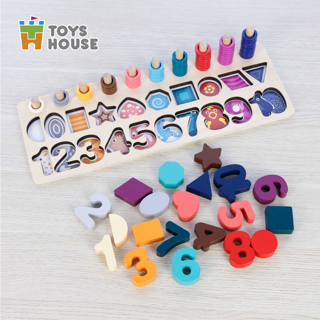 Đồ chơi gỗ lắp ghép Toyshouse 574 cho bé, bảng học chữ số, hình khối và tập đếm giáo dục sớm cho trẻ Đồ chơi ghép số 3D thông minh Toys House sẽ là một