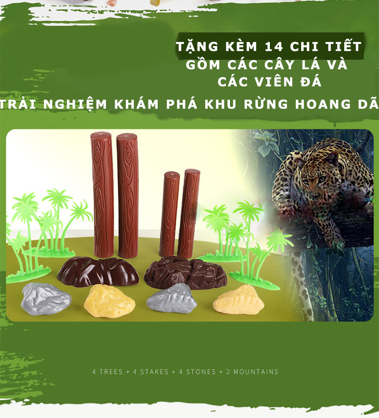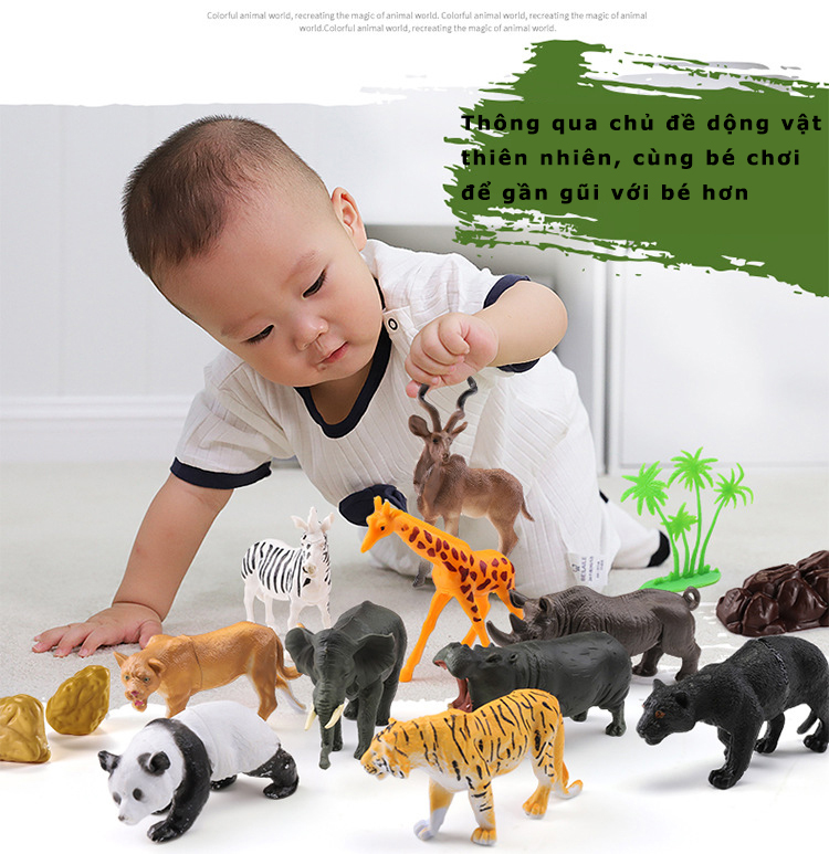 Bộ đồ chơi khám phá thú hoang dã. Được mô tả thế giới hoang dã thọng qua các mô hình. Ngoài ra còn có các chi tiết như hoa, lá, đá nhằm giúp bé sáng tạo khi chơi. Mô phỏng như thế giới động vật thật. Giúp trẻ phát triễn các kỹ năng nhận thức. Giúp bé gần gũi hơn và hiểu biết nhiều hơn trong thế giới động vật quanh ta. Qua đó các bậc phụ huynh cũng có thể tương tác dạy cho con cái nhiều thứ thông qua đồ chơi mô phỏng thú hoang dã.