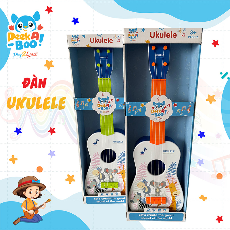 Đồ Chơi Peek A Boo Đàn Ukulele PAB016 Khoa học đã chứng minh “âm nhạc” giúp bé tập trung và phát triển ngôn ngữ. Khi bé chơi đồ chơi phát ra âm thanh, bé sẽ