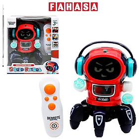 - Nhảy múa theo nhạc sống động Bộ sản phẩm đồ chơi Hộ vệ thép điều khiển từ xa bao gồm: 1 x Robot điều khiển từ xa Mực tuần tra (sử dụng pin tiểu, không kèm pin) 1 x Remote điều khiển (sử dụng pin tiểu, không kèm pin) Khoảng cách điều khiển tối ưu: 10 ~ 15m (Không bị ngăn cách bởi tường hoặc vật cản)
