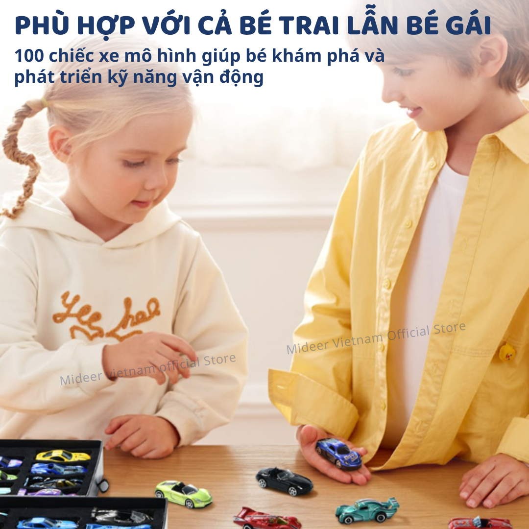 - PHÙ HỢP VỚI CẢ BÉ TRAI LẪN BÉ GÁI: Dù là bé trai hay bé gái, 100 chiếc xe mô hình hấp dẫn này đều sẽ là món đồ chơi yêu thích, giúp bé phát triển khả năng khám phá và kỹ năng vận động.
