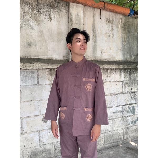 ✨Đồ đi chùa nam cao cấp thêu túi dài tay, đồ lam nam