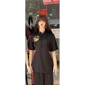 Đồ lam đi chùa - áo xống đi chùa - Đồ lam phật tử - Bộ đồ đi lễ chùa thêu sen cổ tàu (Ảnh + Video cửa hàng tự quay) Bộ đồ lam phật