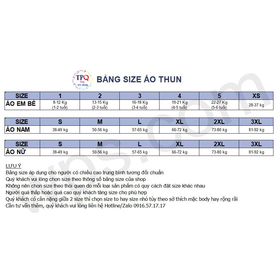 - Áo Size nam nữ như nhau: S dưới 48kg, M dưới 57kg, L dưới 67kg, XL dưới 77kg, XXL dưới 86kg .( em bé vui lòng ghi chú cân nặng và chiều cao) _ Hoặc bạn ghi chú cân nặng chiều cao khi đặt hàng để shop lấy size vừa Sản phẩm này là tài sản cá nhân được bán bởi Nhà Bán Hàng Cá Nhân và không thuộc đối tượng phải chịu thuế GTGT. Do đó hoá đơn VAT không được cung cấp trong trường hợp này.