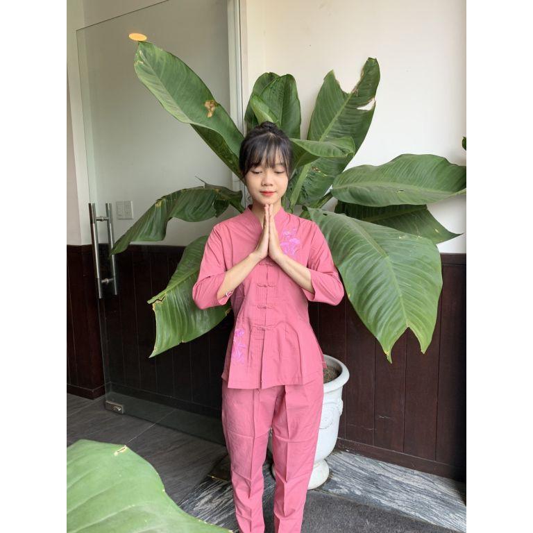 quần áo Phật tử cổ tàu cài chéo - đồ lam đi chùa Sen Hồng - set Phật tử nữ đẹp 0898553583