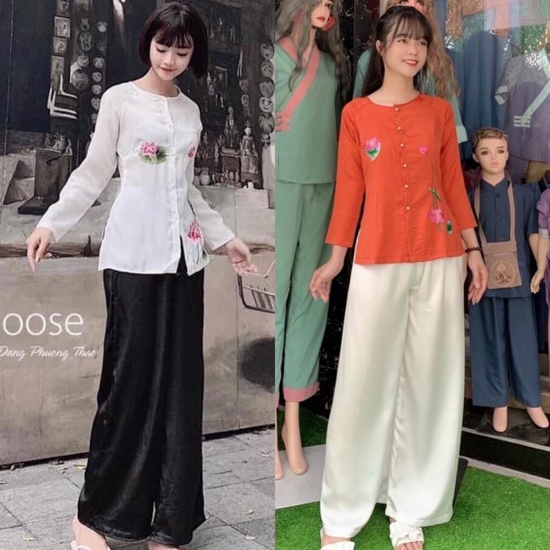 ✨Đồ Lam Đi Chùa # Bà Bà Thêu Hoa Lụa Pháp Cao Cấp # Quần Áo Nữ # Đồ Bộ Nữ