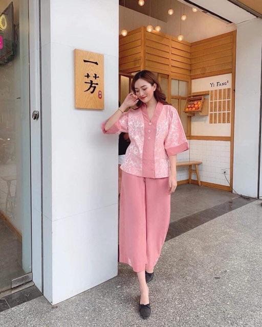 Quần áo đi chùa lụa gấm - pháp phục nữ Sen Hồng thiết kế cao cấp Hà Nội HCM