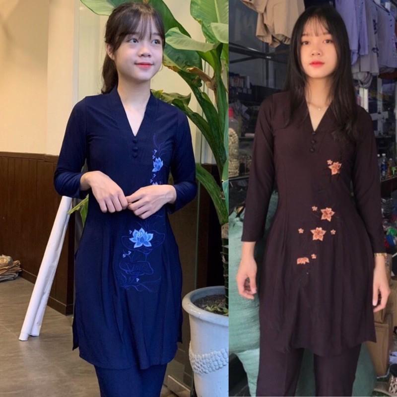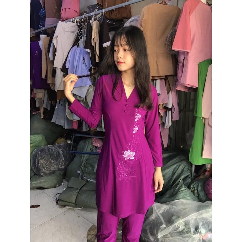 THÔNG TIN SẢN PHẨM Đồ Lam Nữ Đi Chùa SJ20 Trang Nhã Kín Đáo Dành Cho Phật Tử THÊU Công Ngọc Cao Cấp CHẤT LIỆU : VẢI SATIN LỤA (MẶC MÁT VẢI CO GIÃN NHẸ)