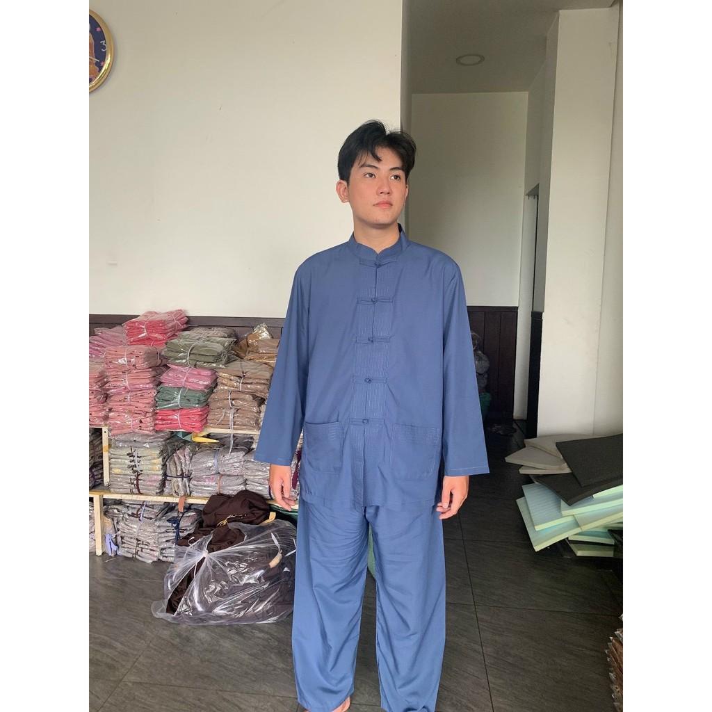 quần áo Phật tử cổ tàu cài chéo - đồ lam đi chùa Sen Hồng - set Phật tử nữ đẹp 0898553583
