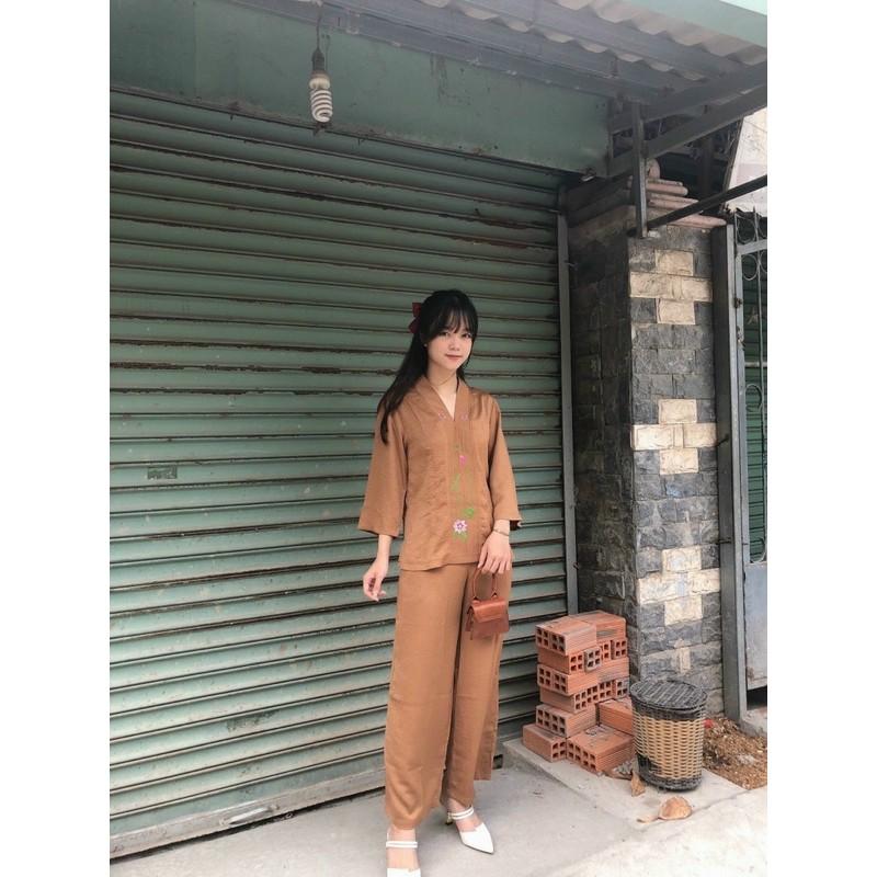 LỤA SEN SANG TRỌNG Chất liệu vải lụa cao cấp mềm mướt_ không xổ lông _ dày dặn kiểu dáng đơn giản, thanh lịch kết hợp quần ống rộng tạo nên sự sang trọng Sản
