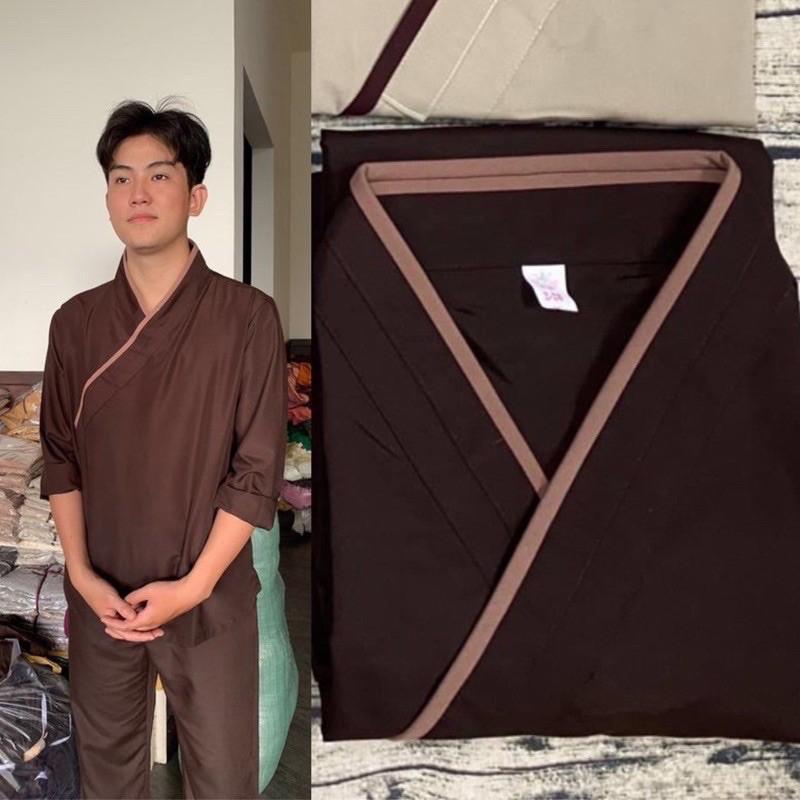 Quần áo phật tử, đồ lam đi chùa mẫu nam thêu túi vải Linen