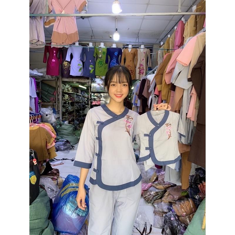 Đồ lam đi chùa - Quần áo đi chùa - Đồ lam phật tử - Bộ đồ đi lễ chùa thêu sen cổ tàu (Ảnh + Video shop tự quay) Bộ đồ lam phật tử