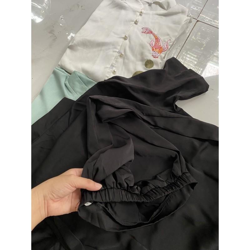 LỤA SEN SANG TRỌNG Chất liệu vải lụa cao cấp mềm mướt_ không xổ lông _ dày dặn kiểu dáng đơn giản, thanh lịch kết hợp quần ống rộng tạo nên sự sang trọng Sản