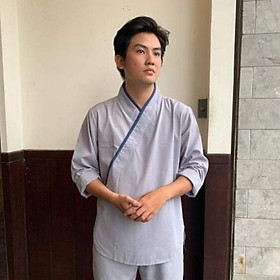 quần áo Phật tử cổ tàu cài chéo - đồ lam đi chùa Sen Hồng - set Phật tử nữ đẹp 0898553583
