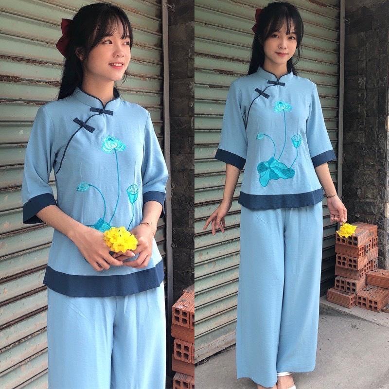 ✨ĐỒ LAM ĐI CHÙA Mầu Đài Loan Thêu Hoa Sen