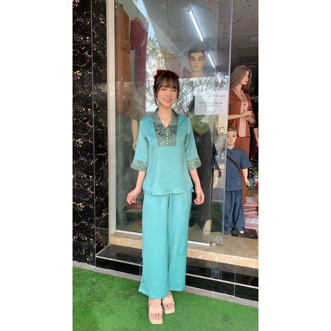 Đồ lam đi chùa - áo xống đi chùa - Đồ lam phật tử - Bộ đồ đi lễ chùa thêu sen cổ tàu (Ảnh + Video cửa hàng tự quay) Bộ đồ lam phật