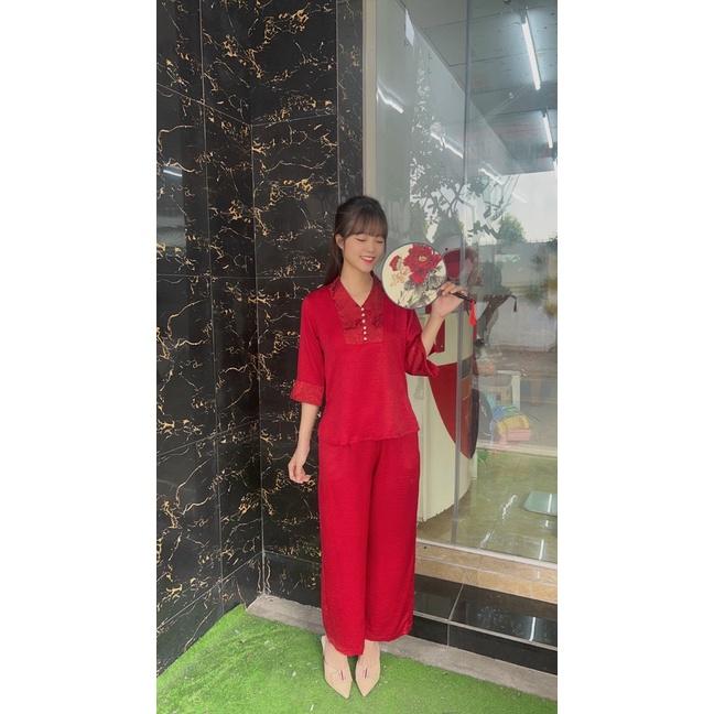 LỤA SEN SANG TRỌNG Chất liệu vải lụa cao cấp mềm mướt_ không xổ lông _ dày dặn kiểu dáng đơn giản, thanh lịch kết hợp quần ống rộng tạo nên sự sang trọng Sản
