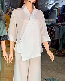 Quần áo phật tử, đồ lam đi chùa mẫu gấm xẻ tà #fashion #quanaophattu