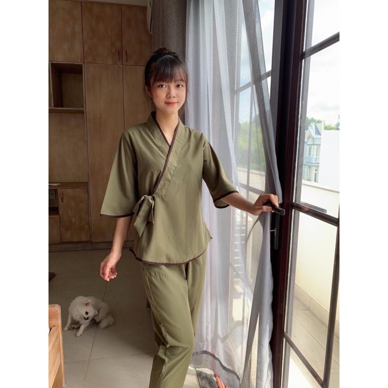 Mẫu pháp phục nữ - quần áo Phật tử đi chùa, đồ lam chất kate lụa mềm có co giãn Sen Hồng 0898553583
