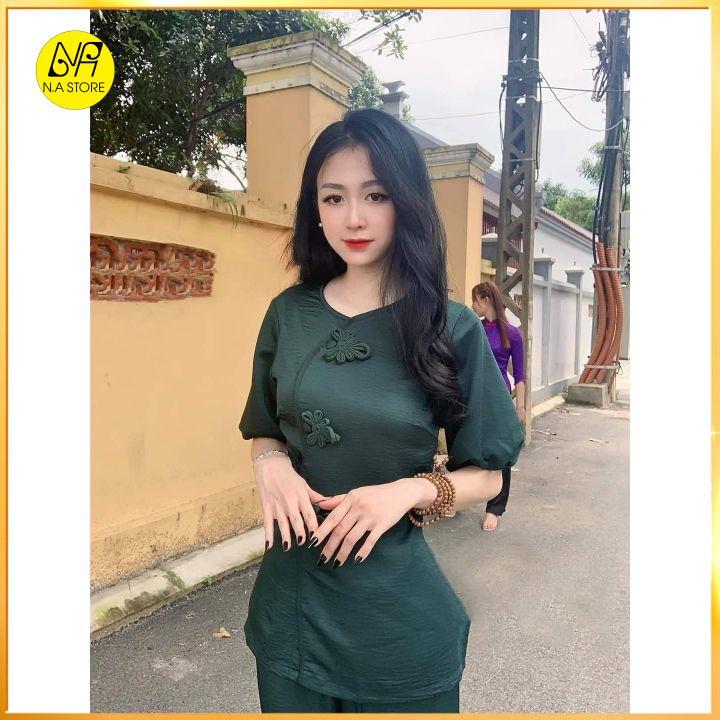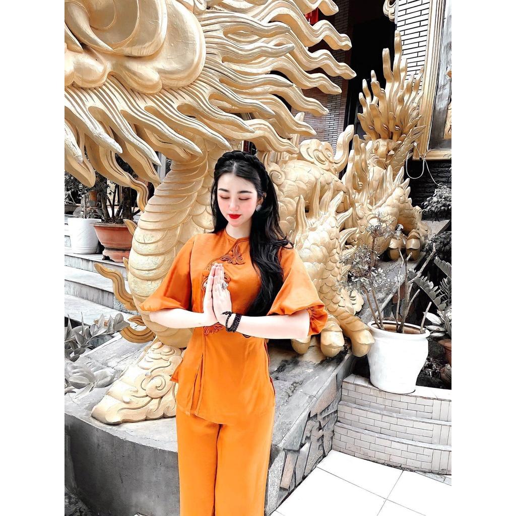 ✨Đồ Lam Đi Chùa Nữ - Bộ Đi Lễ Chùa Đẹp Cao Cấp Trang Nhã Vải Tuyết Nhung Nút Tàu Tay Phồng - AL027