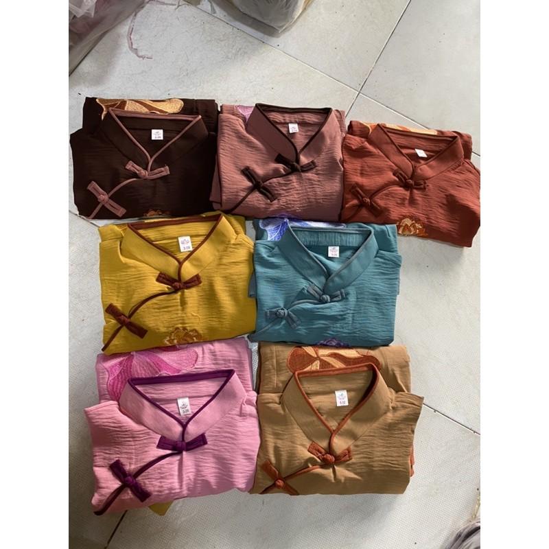 Chất Vải Lụa Pháp Phối Gấm Cao Cấp Hoặc Vải Lụa Phối Gấm Tuỳ Màu Và Size Nên Chất Vải Khác Nhau Quần Ống Rộng Cổ Áo Chui Không Cài Nút BÁN LẺ GIÁ SỈ