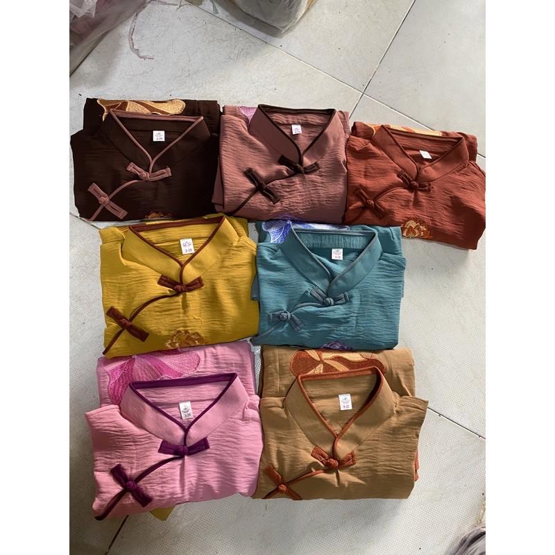 Chất Vải Lụa Pháp Phối Gấm Cao Cấp Hoặc Vải Lụa Phối Gấm Tuỳ Màu Và Size Nên Chất Vải Khác Nhau Quần Ống Rộng Cổ Áo Chui Không Cài Nút BÁN LẺ GIÁ SỈ