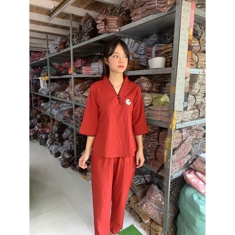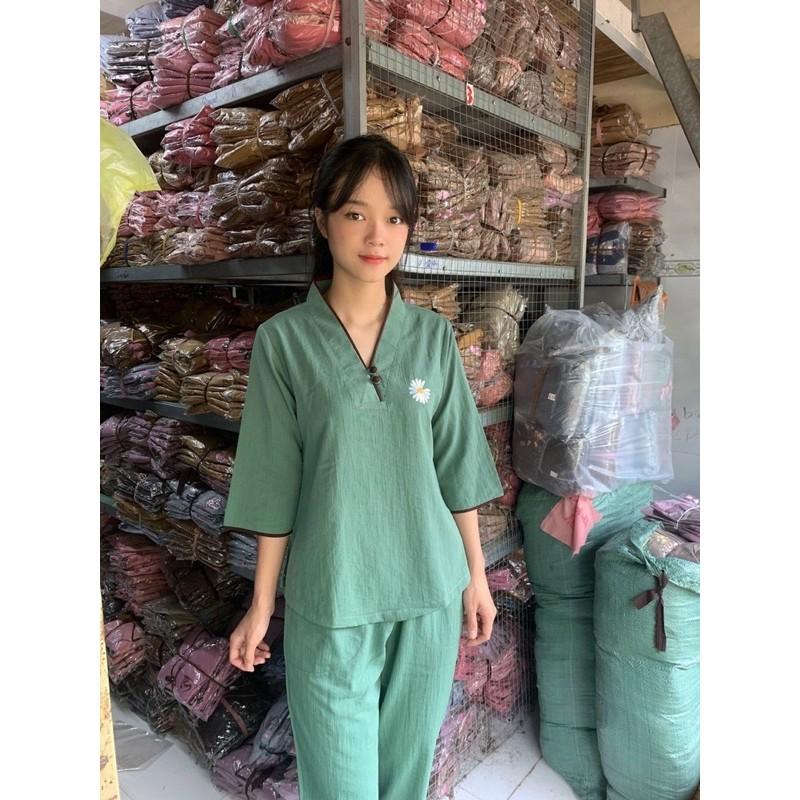 Đồ lam đi chùa - Quần áo đi chùa - Đồ lam phật tử - Bộ đồ đi lễ chùa thêu sen cổ tàu (Ảnh + Video shop tự quay) Bộ đồ lam phật tử
