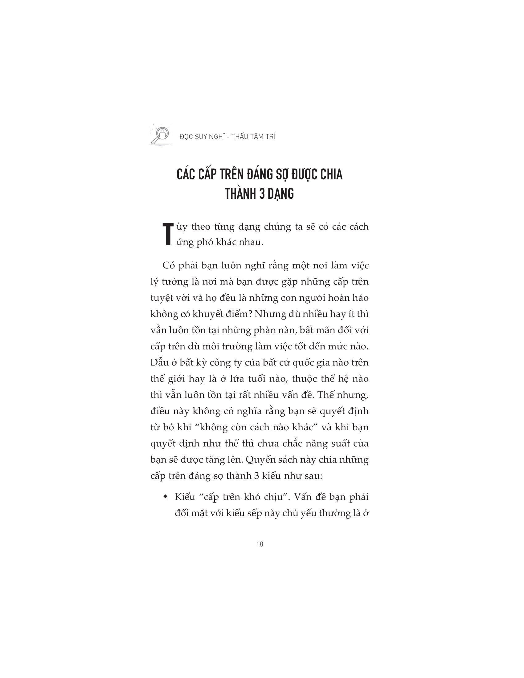 Đọc Suy Nghĩ - Thấu Tâm Trí Hầu hết nhân viên trẻ mới bước chân vào thị trường lao động đều sẽ đối mặt với những khó khăn nhất định trong việc hòa nhập vào môi trường làm việc và văn hóa công ty. Đối với những người làm đầu tiên đi làm, vấn đề lớn nhất có lẽ đến từ từ mối quan hệ với đồng nghiệp và các lãnh đạo trực tiếp cũng như gián tiếp. Khoảng 30% nhân viên trẻ và nhân viên mới rời công ty sau khoảng 3 năm gắn bó vì lý do giao tiếp công việc và áp lực từ cấp trên, nhưng không có gì đảm bảo rằng đến công ty mới họ sẽ không phải gặp lại vấn đề tương tự. Trong cuốn sách “Đọc suy nghĩ – Thấu tâm trí”, tác giả Hironori Furukawa trình bày một số nguyên nhân khiến nhân viên không thể gắn bó lâu dài với công ty: