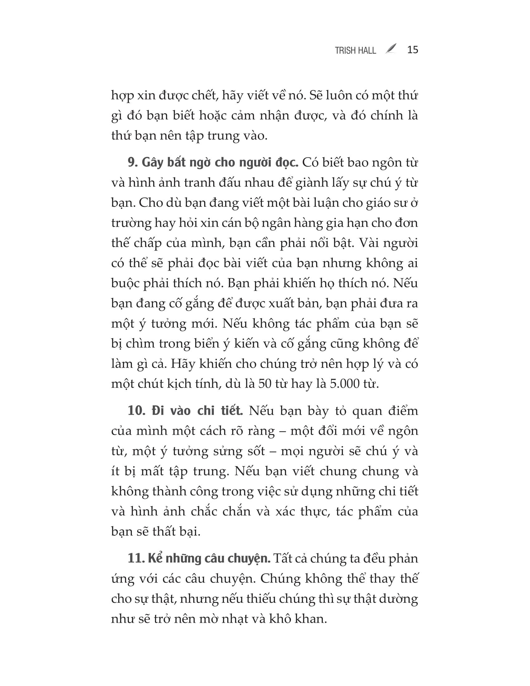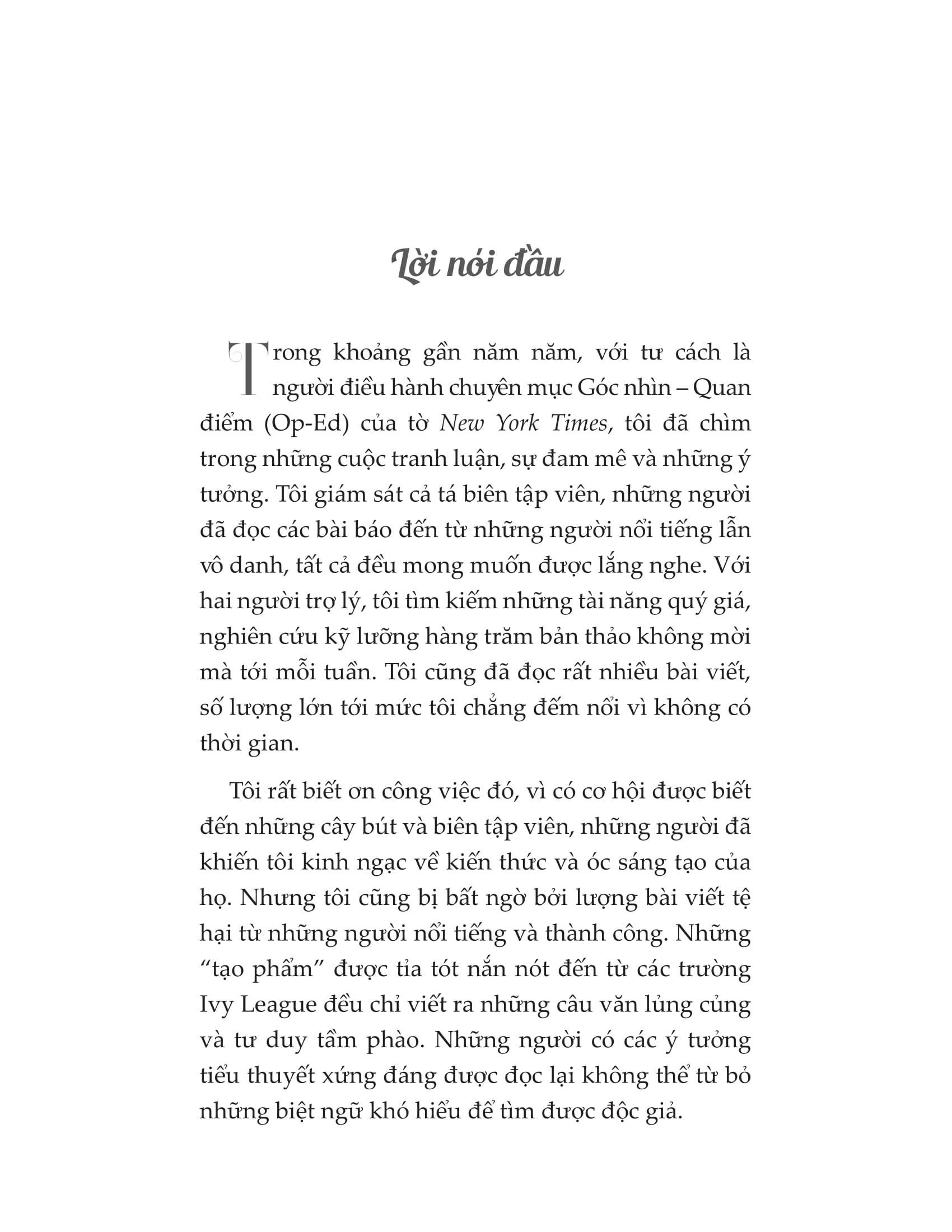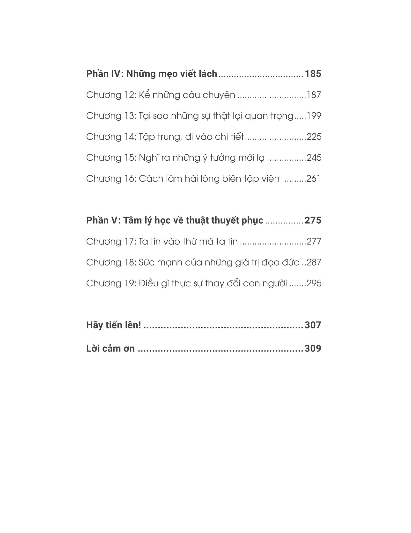 Thông qua cuốn sách này, Trish Hall sẽ chỉ cho độc giả cách trình bày ý kiến của m.ình thật thuyết phục, cho dù bạn đang viết một bài luận cho giáo sư tại trường đại học, một ứng tuyển việc làm, hay cần thuyết trình về kế hoạch của m.ình tại nơi làm việc. Mặc dù cuốn sách chủ yếu là về viết lách, tác giả đã chèn thêm các yếu tố tâm lý học để làm luận chứng cho những phương pháp mà cô đưa ra. Hiểu biết về hành vi của con người sẽ rất hữu dụng khi giao tiếp trực tiếp.