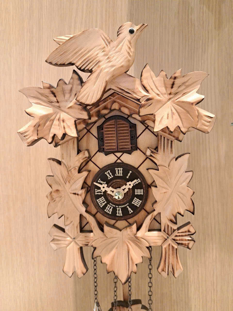 Đồng hồ Cuc koo nổi tiếng thế giới được chế tác thủ công tinh xảo hoàn toàn bằng tay và gỗ tự nhiên tại vùng Rừng Đen (Black Forest) nước Đức. Chạy pin, máy Đức siêu bền và chuẩn xác Chim cu gáy kêu mỗi giờ, điểm số tiếng Đồng hồ chim cúc cu bằng gỗ thật, mái lợp ngói bằng gỗ thật, vỏ gỗ rắn chắc Bộ chuyển động thạch anh hoạt động bằng pin chính xác thứ hai - không cần cuộn dây. Tự động tắt tiếng vào ban đêm thông qua cảm biến ánh sáng Kích thước: 26 x 28cm. Kích thước này chỉ đề cập đến thân đồng hồ, ko kể dây (để dây kích thước là 32x28cm)