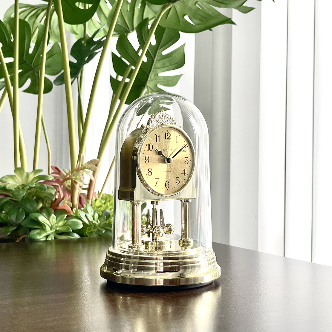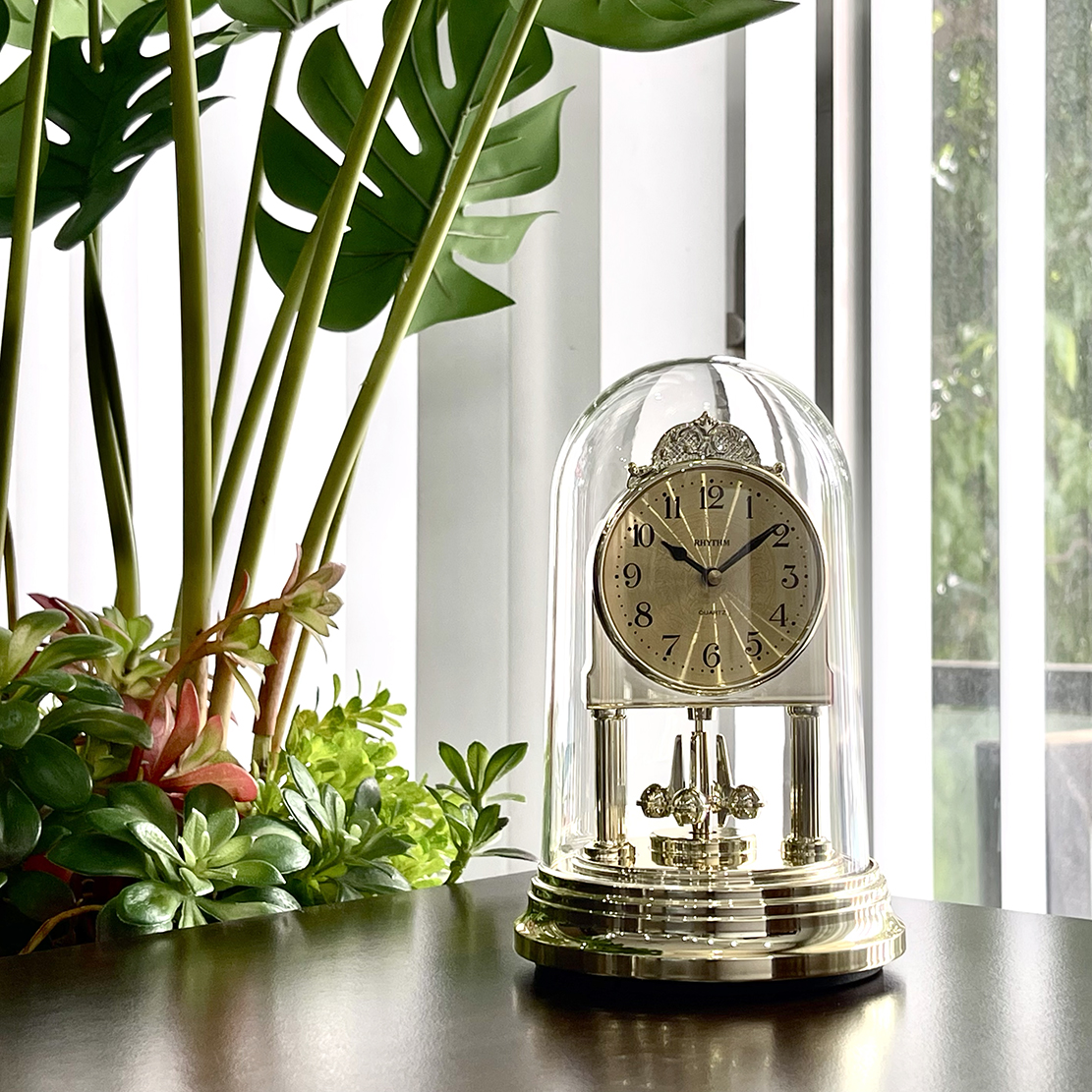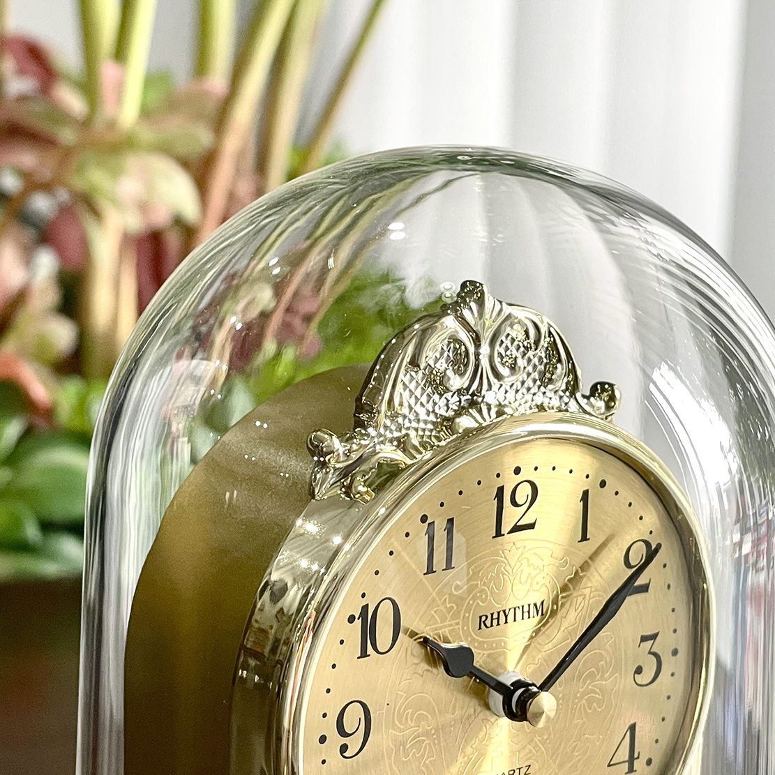 Mua tại TiktokĐồng hồ để bàn ly chụp Rhythm 4SG888WR18, dùng pin (AAx1), vỏ nhựa, mạ vàng. Ly chụp mica trong suốt, chống rạn nứt. Kích thước 10.8 x 17.5 x 10.8cm, trọng lượng 380g. Quả xoay qua lại đẹp mắt, thu hút vượng khí. Mặt đồng hồ bằng nhôm dập vân mạ vàng cổ điển. Máy chạy cực êm, chính xác, bền bỉ.