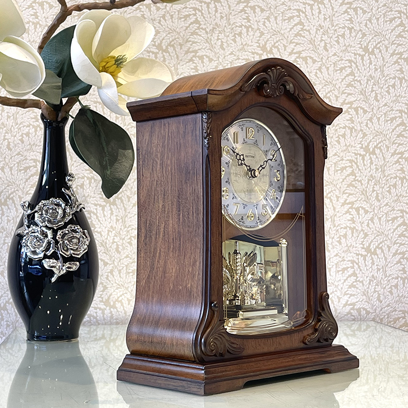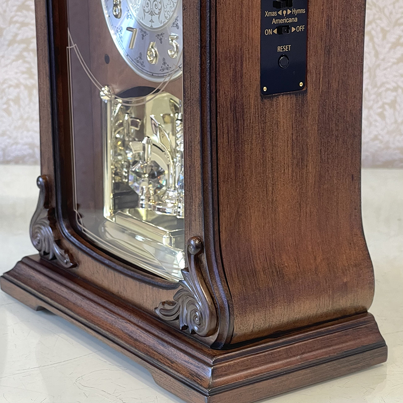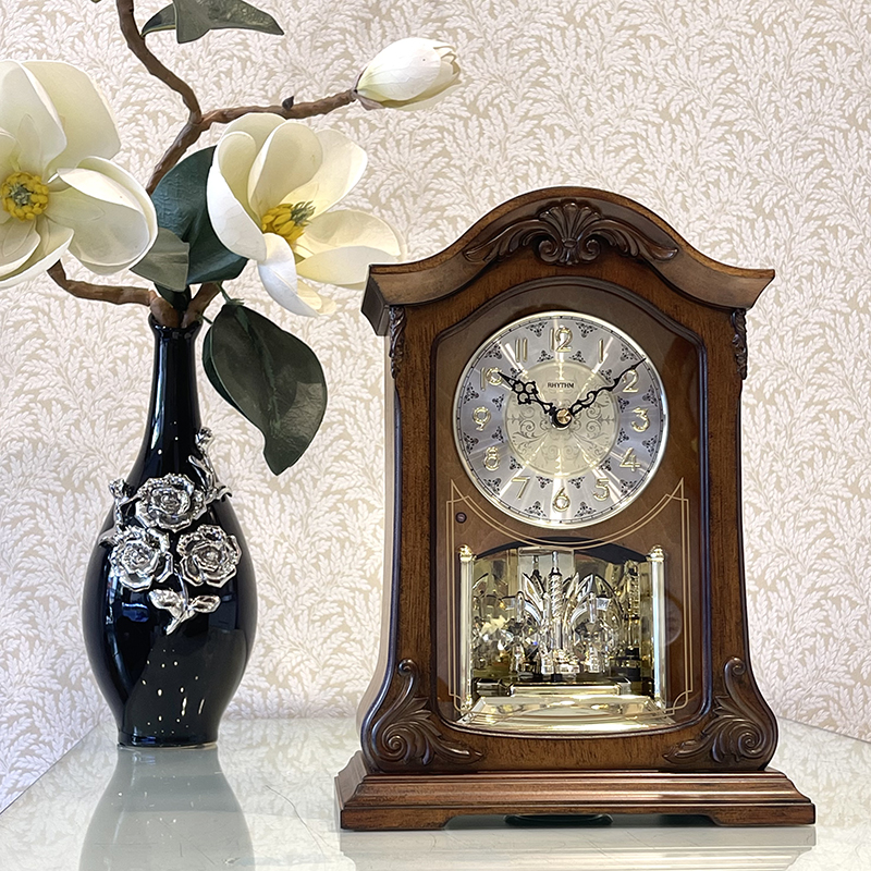 Mua tại TiktokĐồng hồ để bàn Rhythm CRH209UR06 – Kt 21.0 x 37.0 x 12.5cm, 1.9kg, dùng pin ( C x 2, AA x 1), vỏ gỗ. Quả lắc cẩn pha lê sang trọng. Âm thanh nổi thính phòng SIP ( Sound In Place ) ngân vang với 4 chọn lựa chế độ phát nhạc gồm : 12 bản nhạc cổ điển / 6 bản giáng sinh. Mắt cảm ứng ánh sáng không phát nhạc khi thiếu sáng. Núm chỉnh âm lượng tiện lợi.