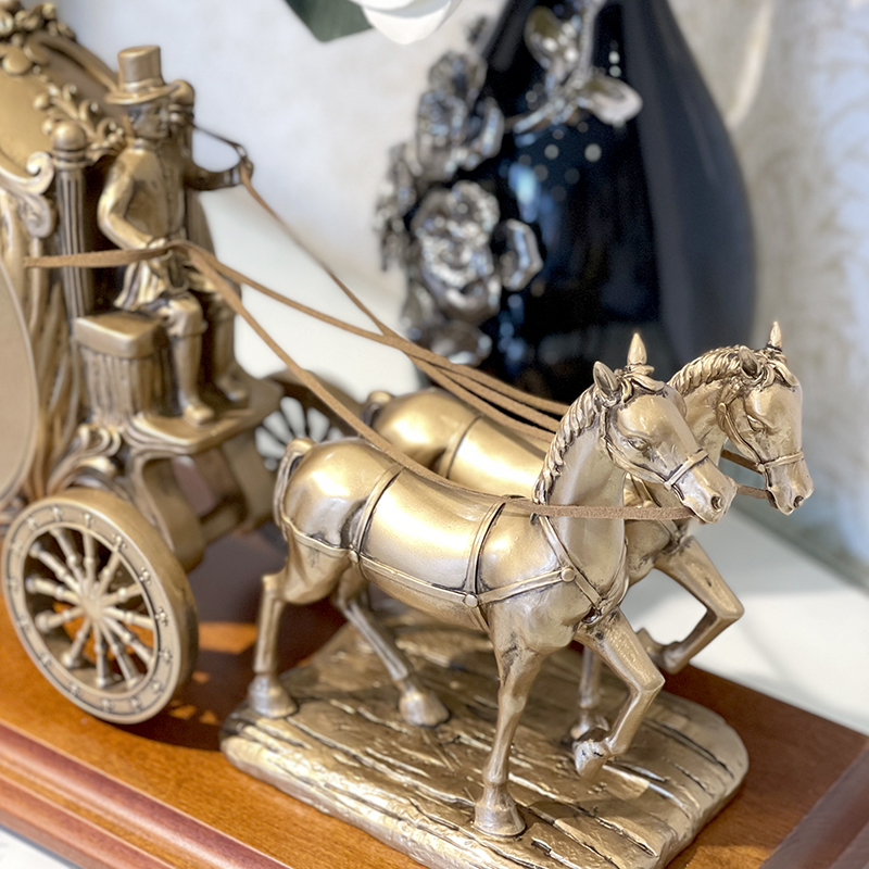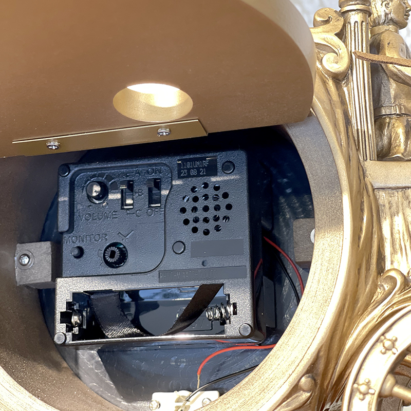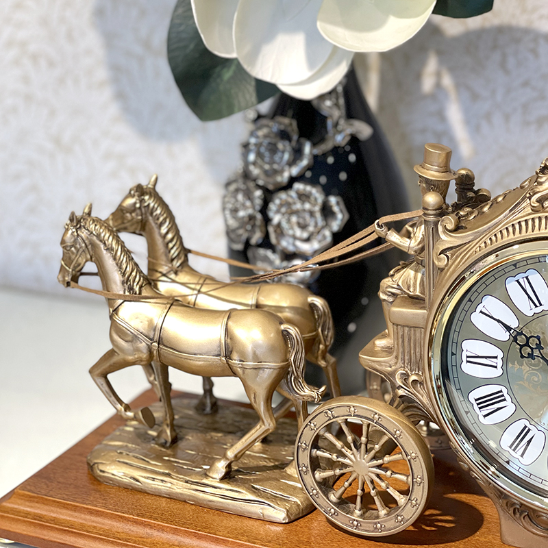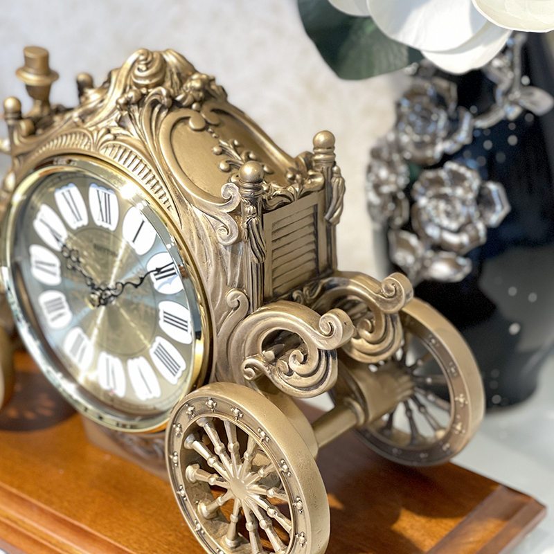 Mua tại TiktokĐồng hồ để bàn Rhythm cỗ xe ngựa CRH229NR18, dùng 2 pin ( AA x 2) vỏ polyresin nhũ vàng, đế gỗ . Kích thước 48.5 x 24.5 x 18.5cm, trọng lượng 3.6kg. Âm thanh thính phòng SIP ( Sound In Palace ) với 24 bản nhạc cổ điển, 6 bản giáng sinh. Có núm chỉnh âm lượng tiện lợi. Cảm ứng ánh sáng tự động không phát nhạc khi thiếu sáng.