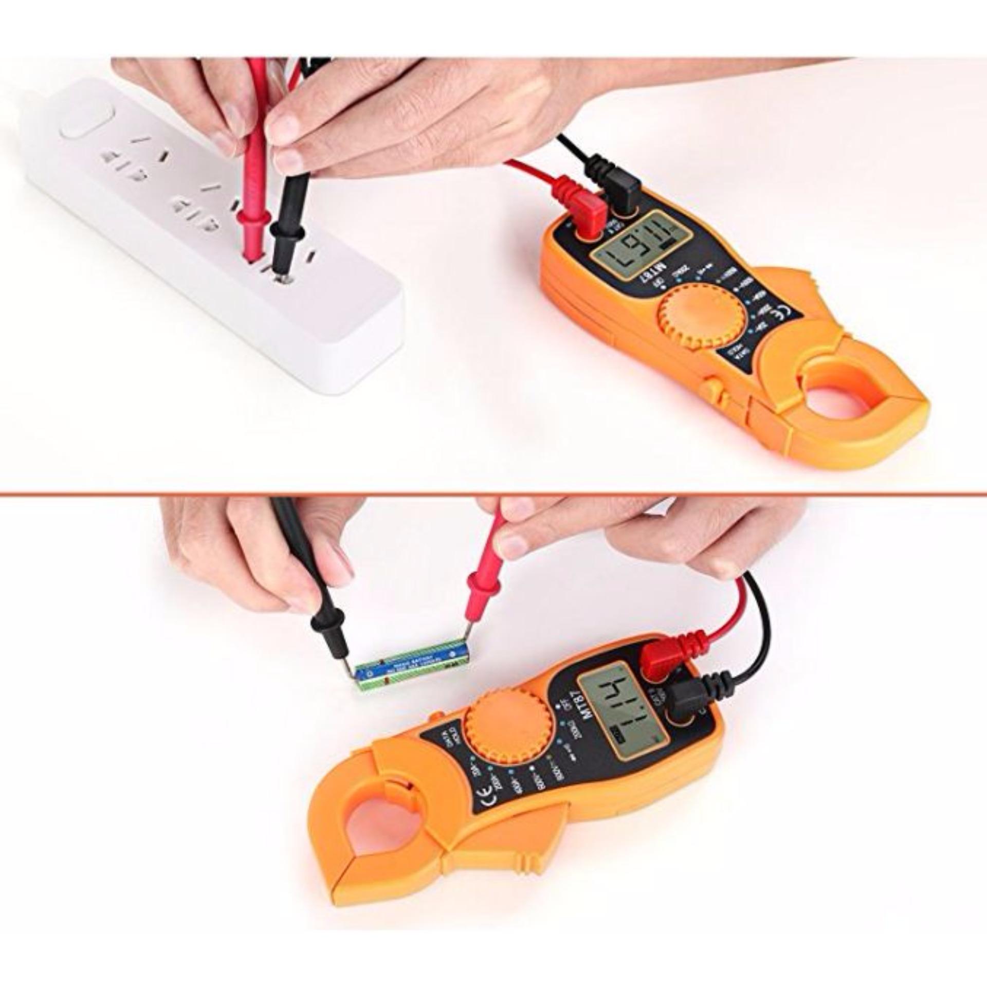 Bộ sản phẩm: đồng hồ ampe kìm + dây đo + pin + sách hướng dẫn Nguồn: (Sử dụng loại pin AAA) 1.5V × 2 pin– Trọng lượng: khoảng 160 g– Kích thước: 16cm chiều dài