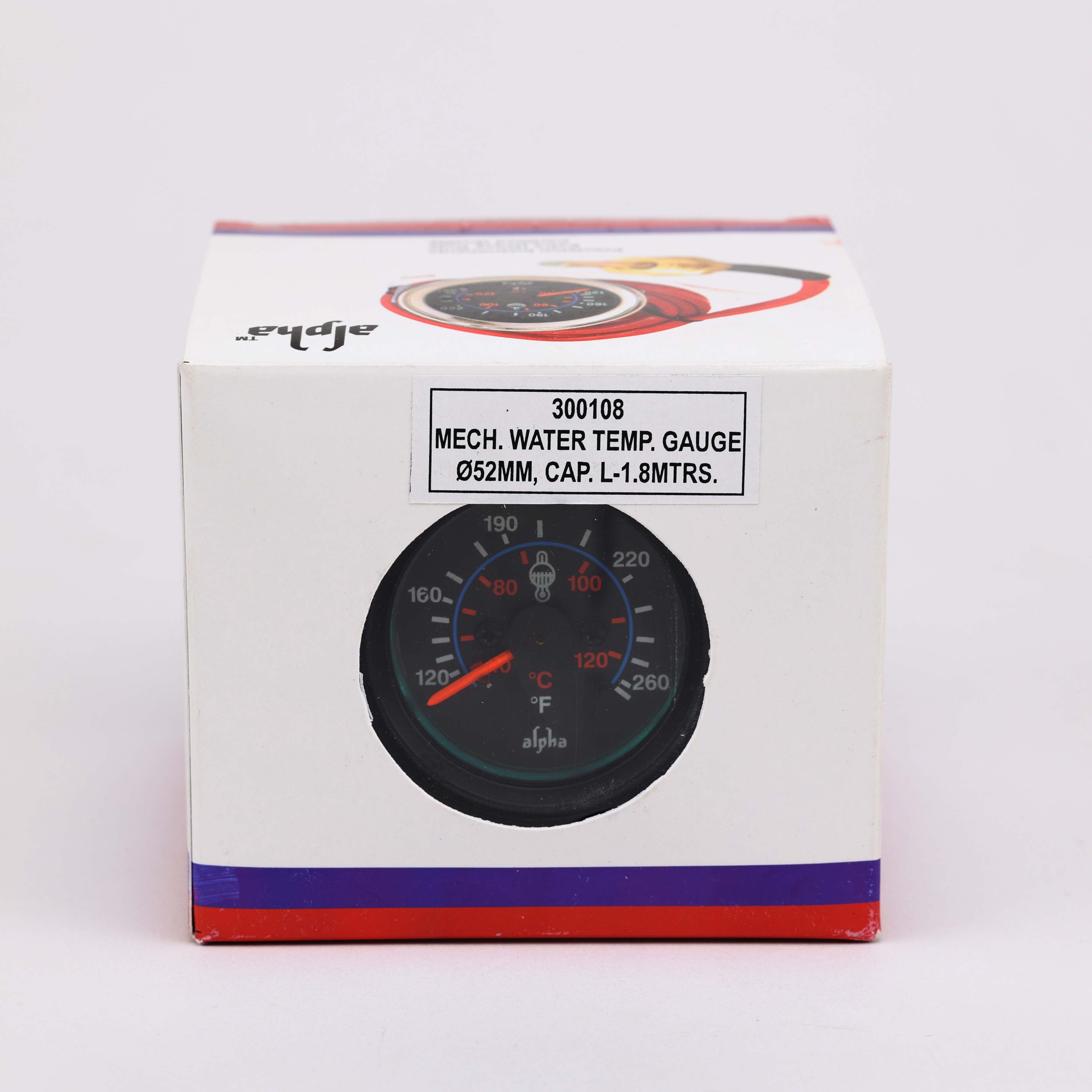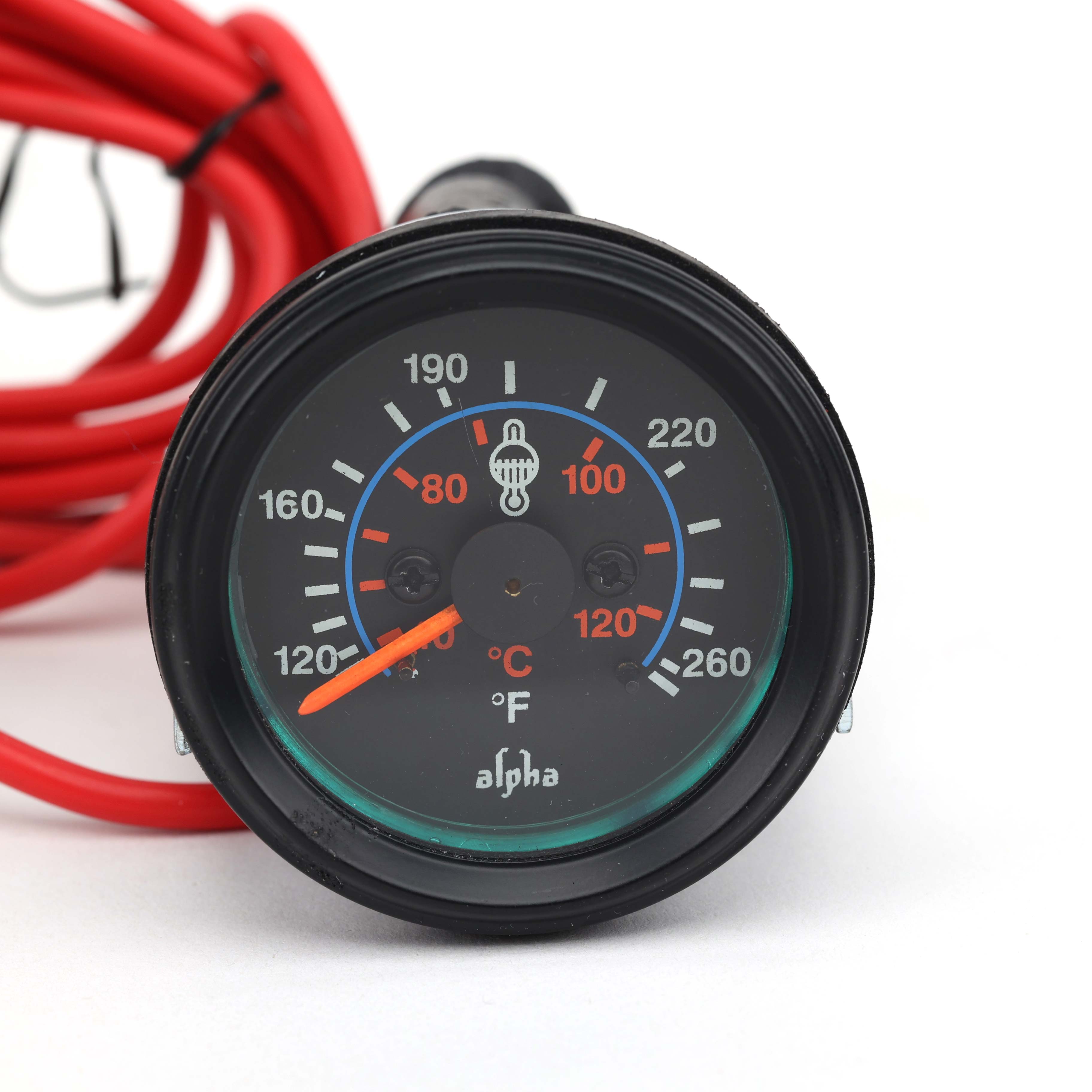 Đồng hồ đo nhiệt độ nước làm mát ALPHA 300108 dây 1.8m được làm bằng hợp kim tiêu chuẩn, các thông số đo rõ ràng, khả năng đo cả độ F lẫn độ C, kích thước