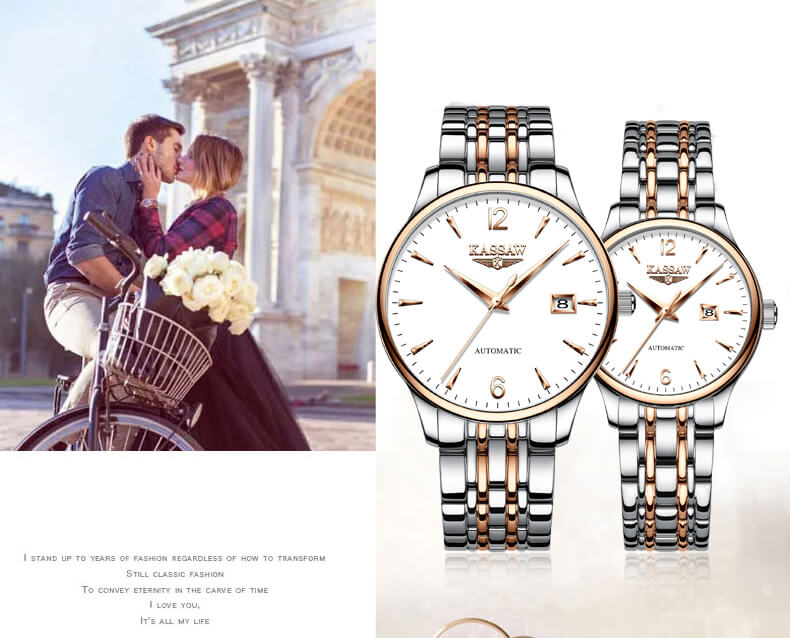 Đồng hồ đôi chính hãng Kassaw Thụy Sỹ Thiết kế sang trọng, đẳng cấp Thời gian trữ cót lâu lên đến 40h Chống nước 5ATM, Kính sapphire nguyên khối chống xước Toàn bộ máy